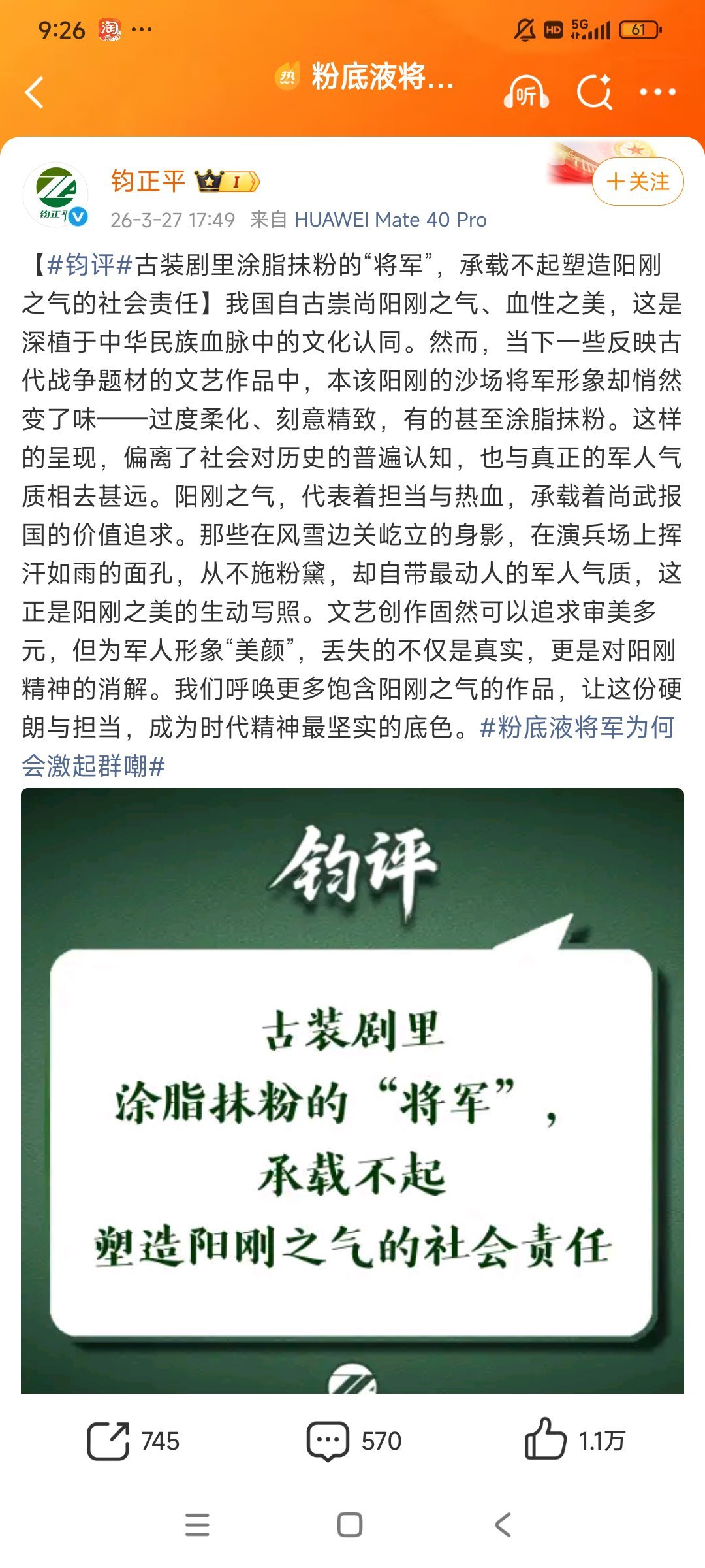 我的天哪,钧正平点评了逐玉粉底液将军的事情,这事这么大吗?这么严重吗?不用我去介绍这个号是谁吧? 其实在我这,我觉得这就是个古偶,弄不到这个层面吧。