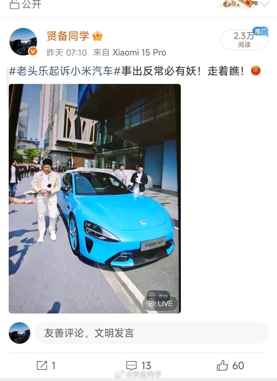 前两天热搜话题“老头乐起诉小米汽车”,我说:事出反常必有妖!走着瞧!然后评论区也是有很多明白人,结果这刚过一天时间,事情开始有反转了!