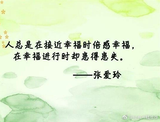 人总是在接近幸福时倍感幸福,在幸福进行时却患得患失。 ——张爱玲