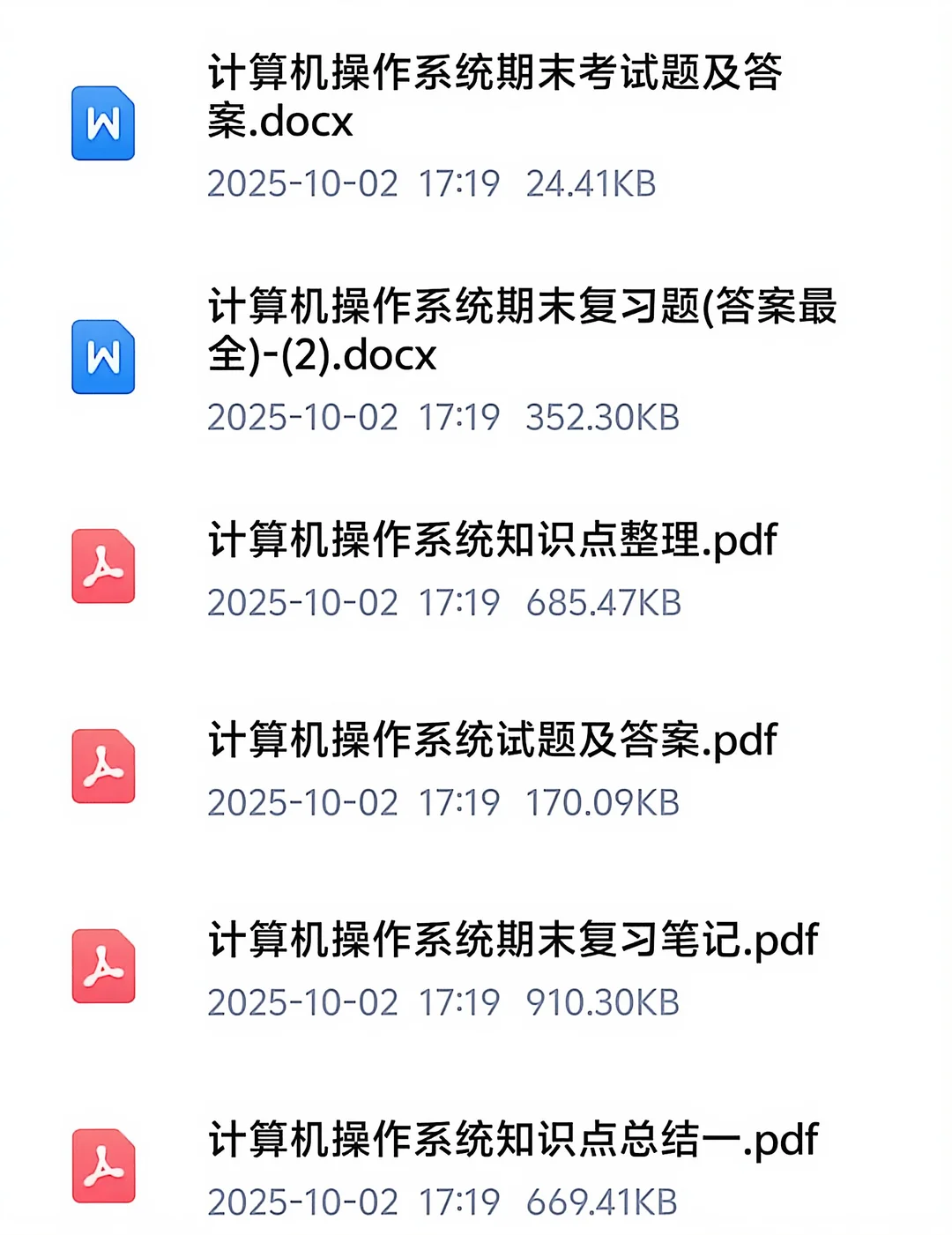整理了大学期末计算机操作系统复习重点,期末速成的宝子可以直接看这个背完95+ 大家可以直接拍