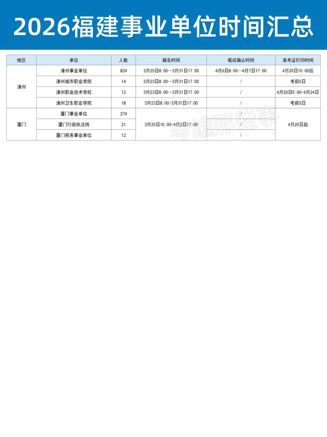 福建事业单位425联考时间汇总,7156人!