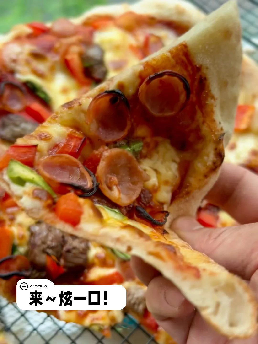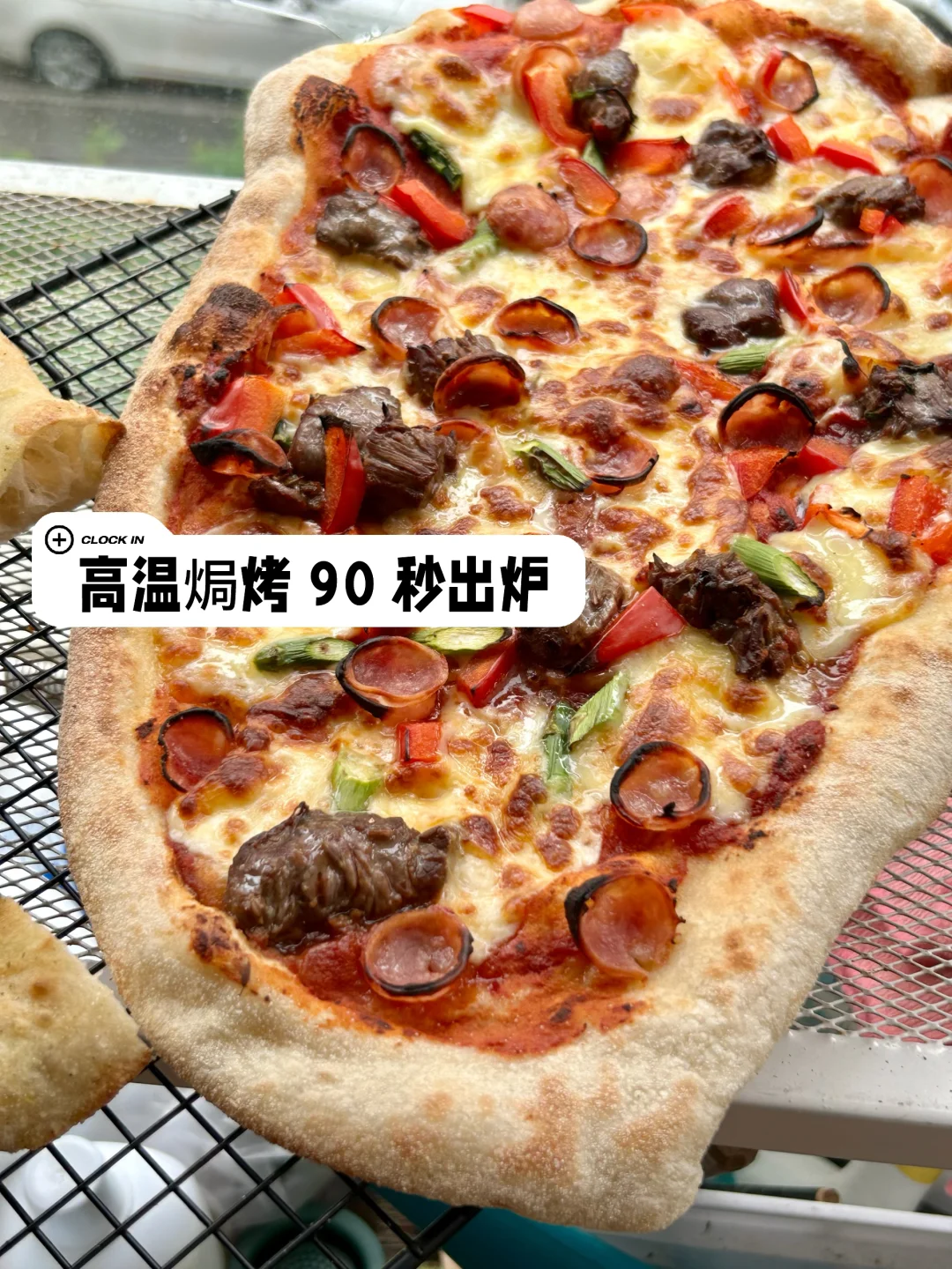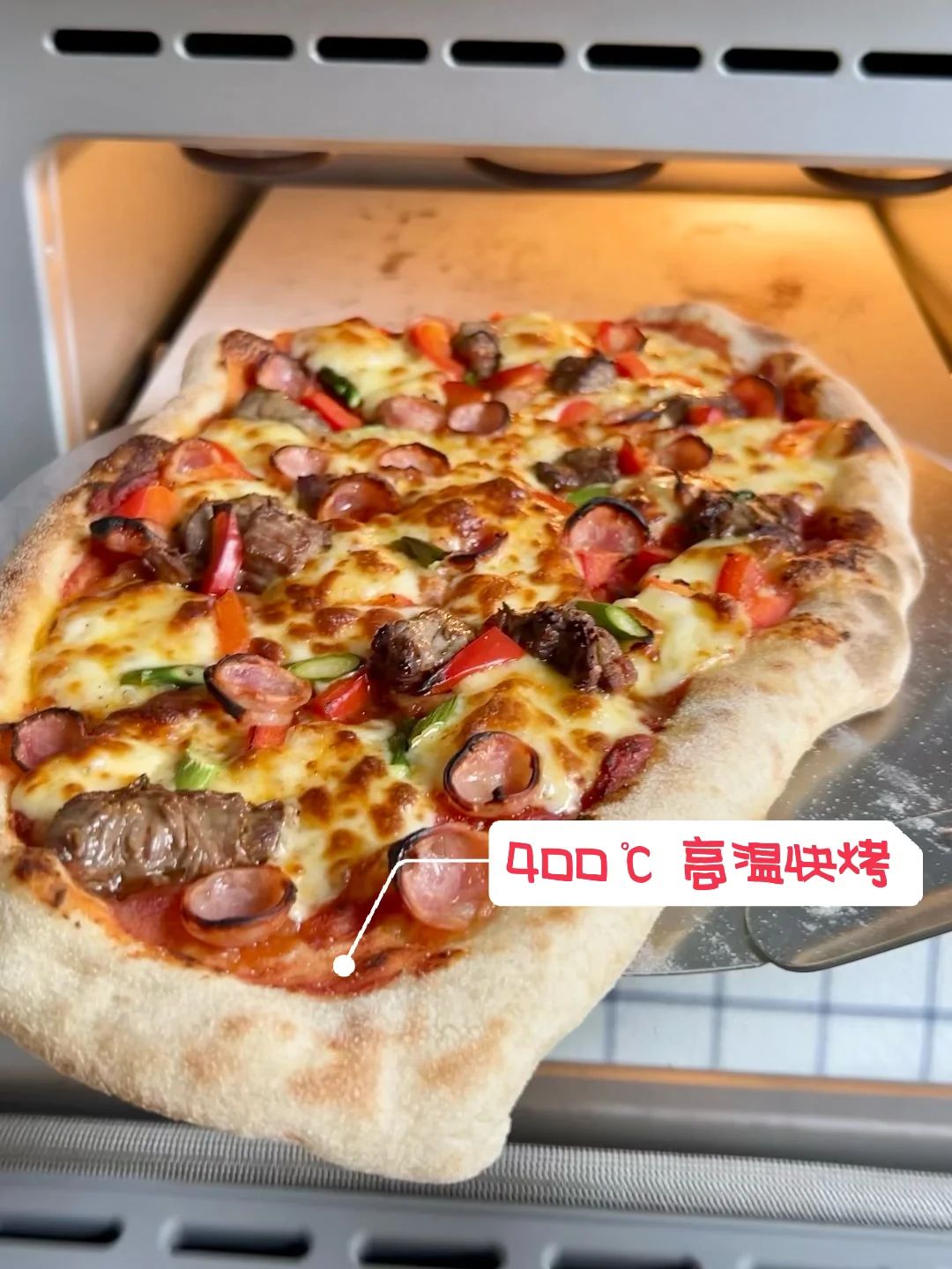 4、专业披萨炉400℃ 高温快烤,只要90 秒出炉,饼边自然上色,高温快烤,锁住水分,外焦里嫩。
