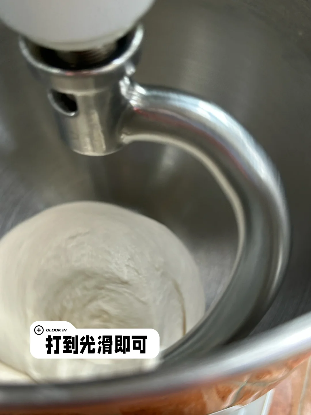 3、只加入 60克冰水,8 克盐,厨师机打面至光滑,面温 20℃;