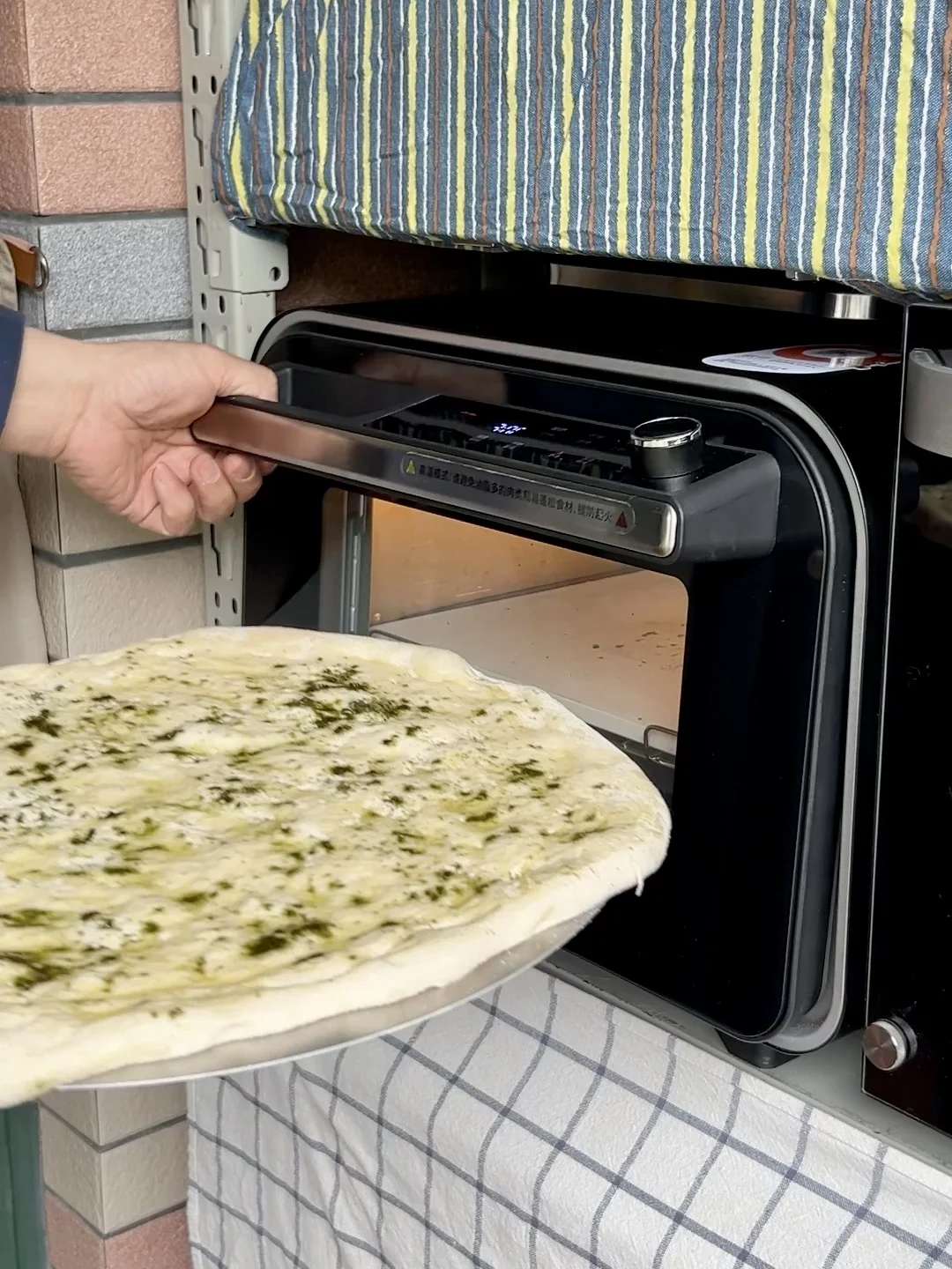 6、家用烤箱建议:放中间靠上层, 230℃,10 分钟左右,看饼边上色程度出炉。