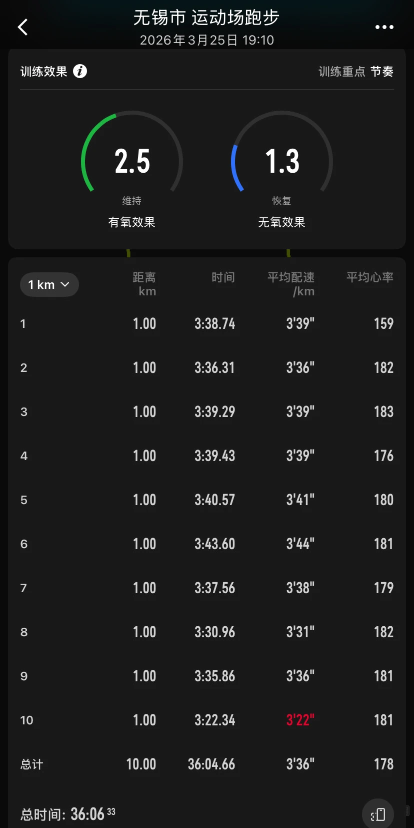 昨晚在无锡运动场刷了10km节奏跑