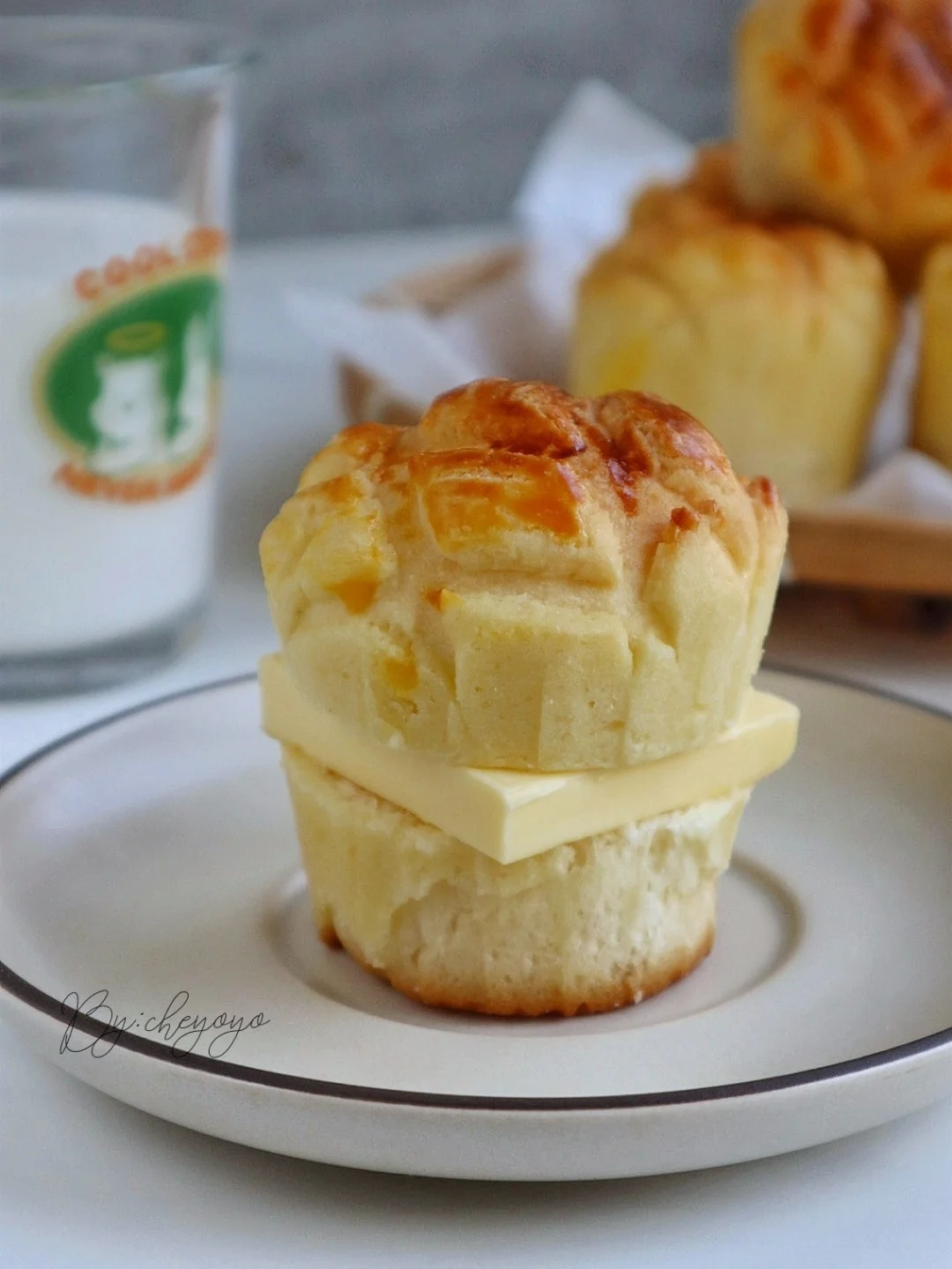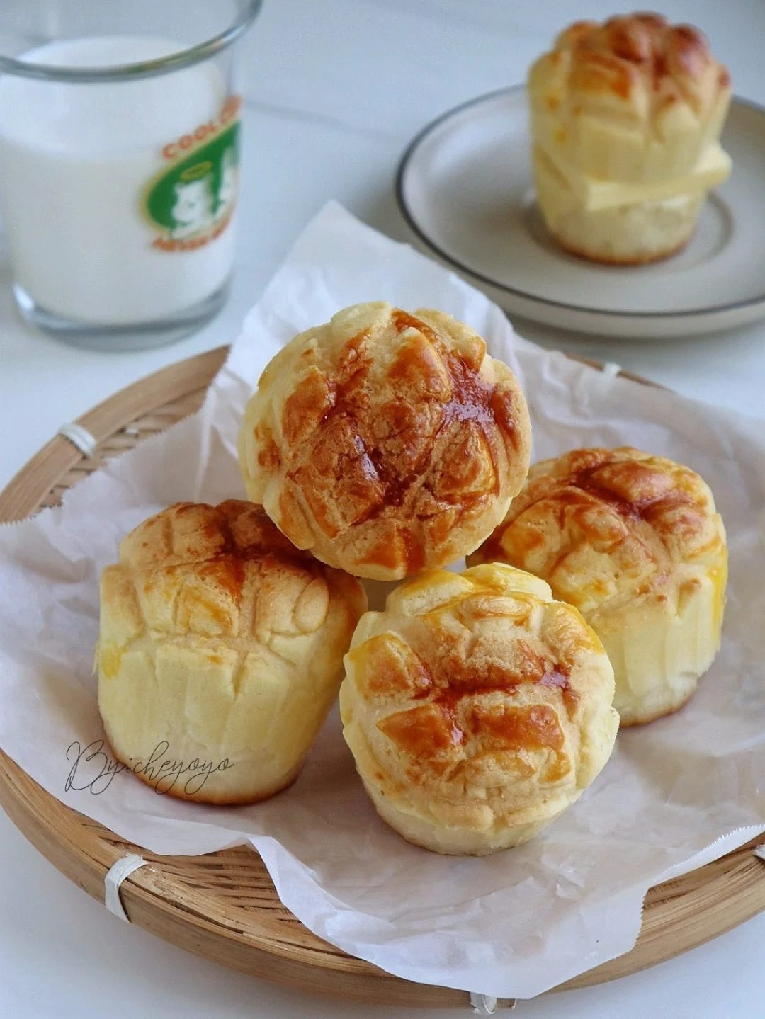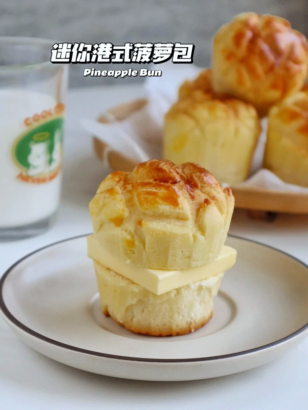 吃过一次就疯狂爱上的的迷你菠萝包,外皮酥到掉渣,掰开松软回弹😍😍出炉趁热夹一块冰黄油,温热的面包瞬间融化黄油,冰火两重天的口感直接封神😘😋