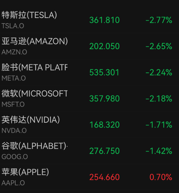 【#美股超3800只个股下跌# 】#美股科技七巨头仅苹果上涨# 北京时间3月27日晚,美股三大指数低开低走。截至发稿,道指跌超1%,跌500个点;纳指跌1.3%,标普500指数跌0.96%。市场上超3800只个股下跌。美股科技七巨头仅苹果上涨。截至发稿,特斯拉跌2.77%,亚马逊、脸书、微软均跌超2%,英伟达跌1.71%,谷歌跌1.42%。