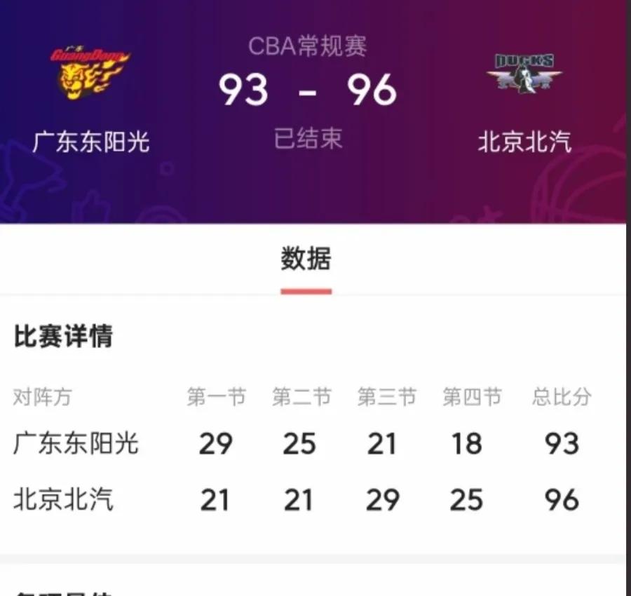 又被绝杀,广东队这个赛季已经被对手绝杀过五六次了。 今晚主场93-96不敌北京,先赢后输,曾经领先过20分之多,难道20分算个屁有玄学,反噬了? 查看书料,北京队在广东主场赢球还得追数到12-13赛季,看来今年广东队主场风水有问题,陈海涛得去拜一下,老爷保号。 这个赛季夺冠热门上海北京广厦,前面两队广东已经完败给他们,广厦还没有交手过,不过看来也是凶多吉少。这赛季想夺冠,以这个阵容有点天方夜谭。要想有所作为,坚持夺冠目标,就得另签一个大外,如果淘到宝,还有机会,可以用麦考尔换。就看老板钱包怎样,想不想掏钱。