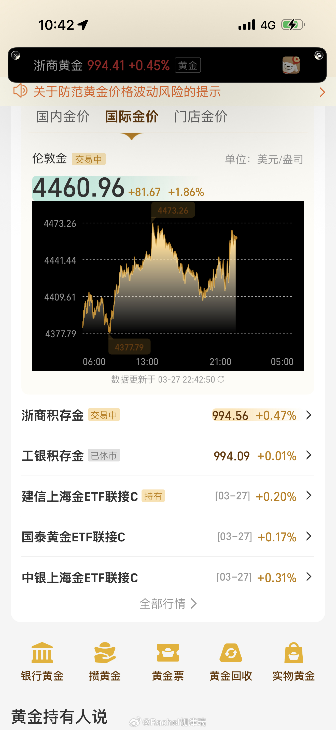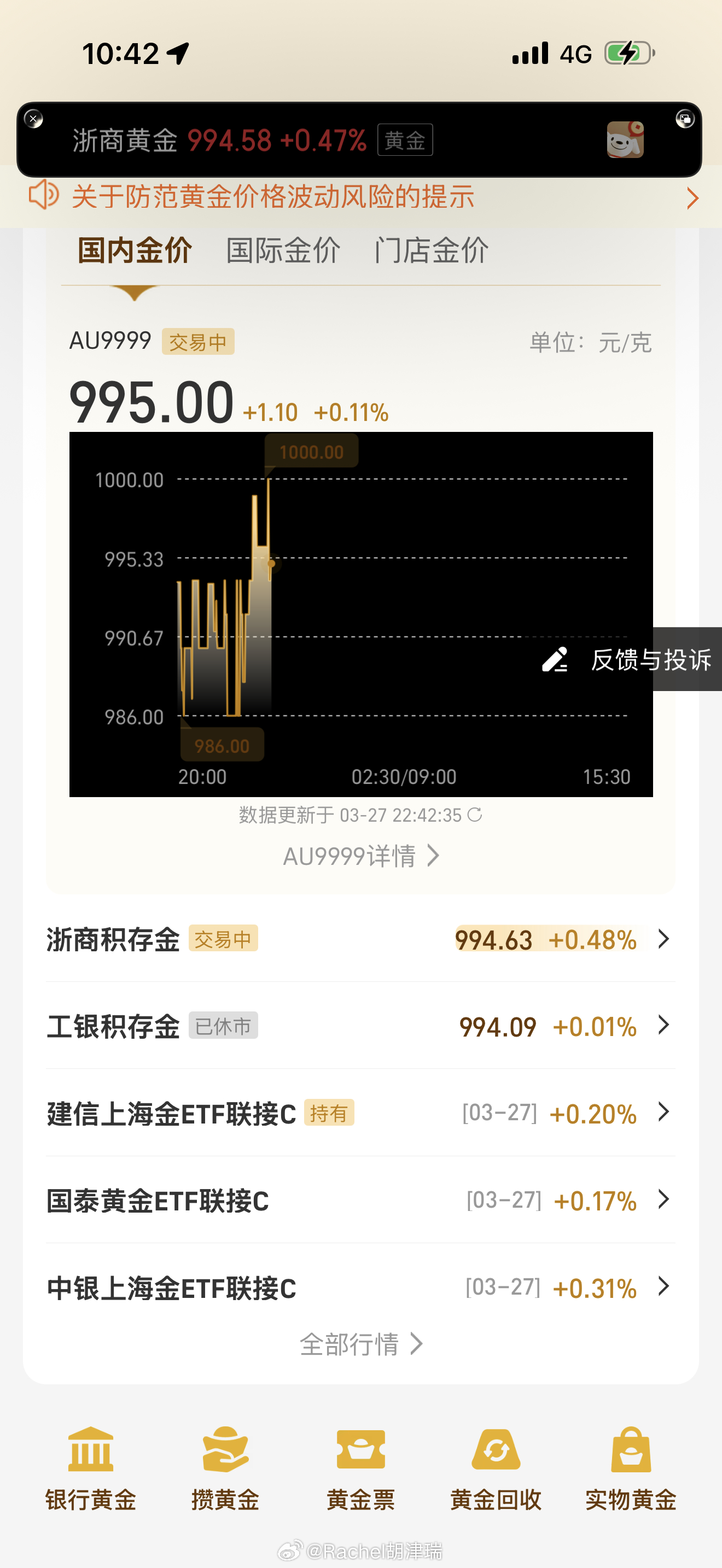 国内金价跌下990元这有啥惊讶的 前阵子都跌到910+了 这说的我以为实物黄金呢