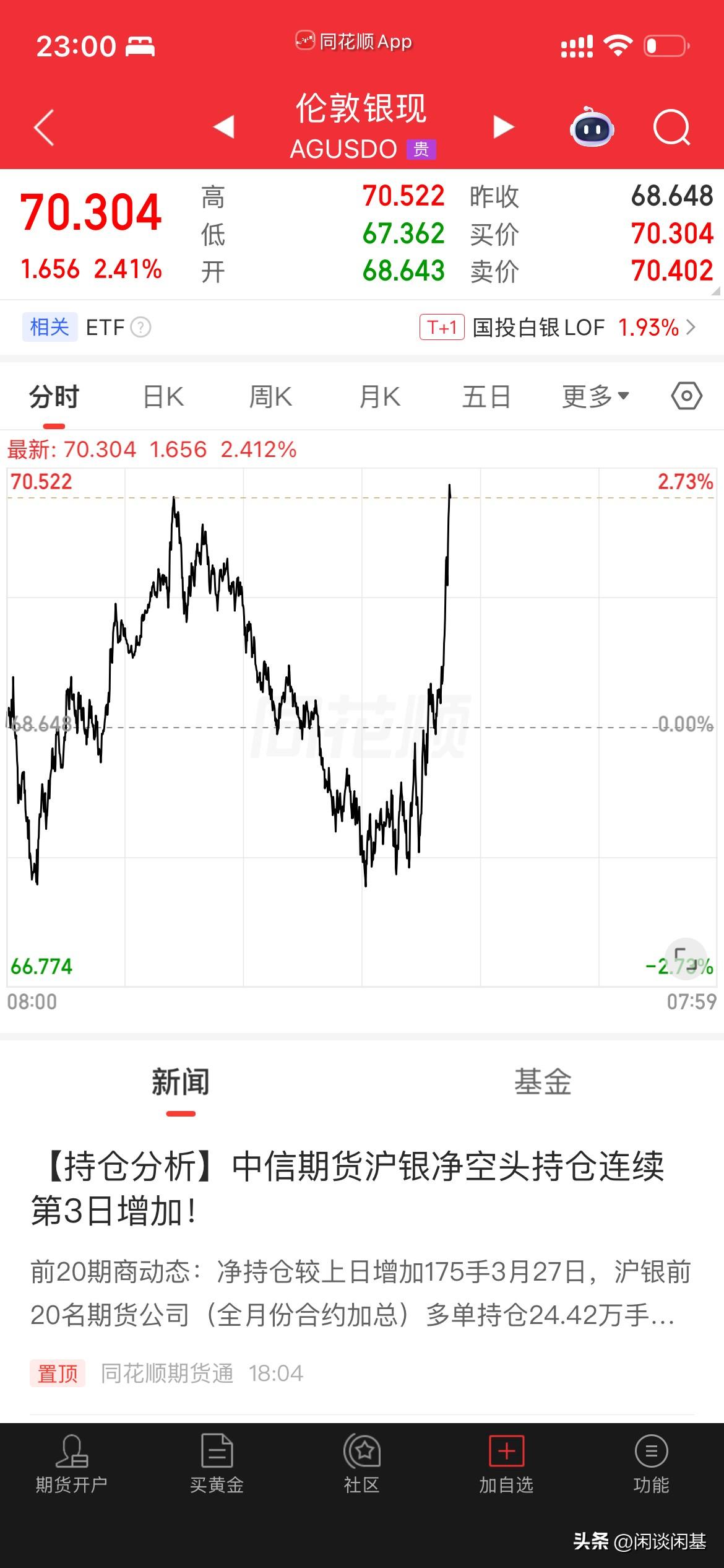 发生什么!外围消息还是来点快啊!现货黄金爆拉100美元,重回4500美元/盎司,大涨2.3%,现货白银猛拉直接翻红并大涨超2%,重回70美元/盎司,但唯一不变是布伦特原油期货依然还是稳稳当当站在110美元/桶上面,这出什么事情了,一下把黄金、白银暴力拉升起来,一起一会看看到底什么因素改变了这个。