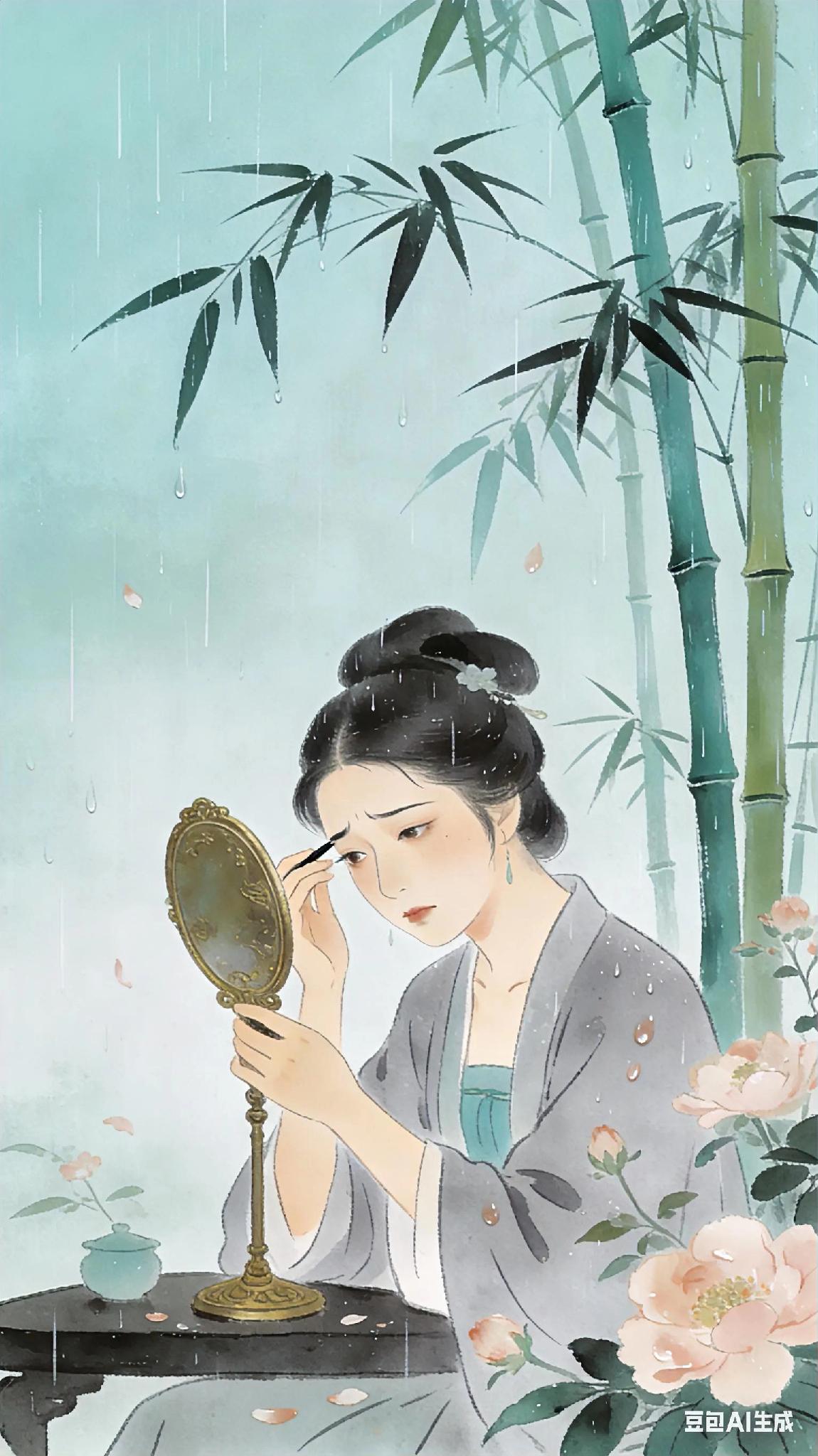 《越调》天净沙离愁、李致远。 敲风修竹珊珊, 润花小雨斑斑。 有恨心情懒懒。 一声长叹, 临鸾不画眉山。 《天净沙·离愁》现译: 微风吹动修竹沙沙作响, 细雨打湿花瓣留下点点斑痕。 怀着愁绪做什么都提不起精神, 只能对镜发出一声悠长的叹息, 连梳妆画眉的心思都没有了。 古诗词 你记得最深的一首古诗词是什么 你最喜欢的一句古诗词是什么 离愁诗 游子秋思 唐诗秋思 天净沙·即事 江上秋思 对秋思的描写 秋思·天净沙