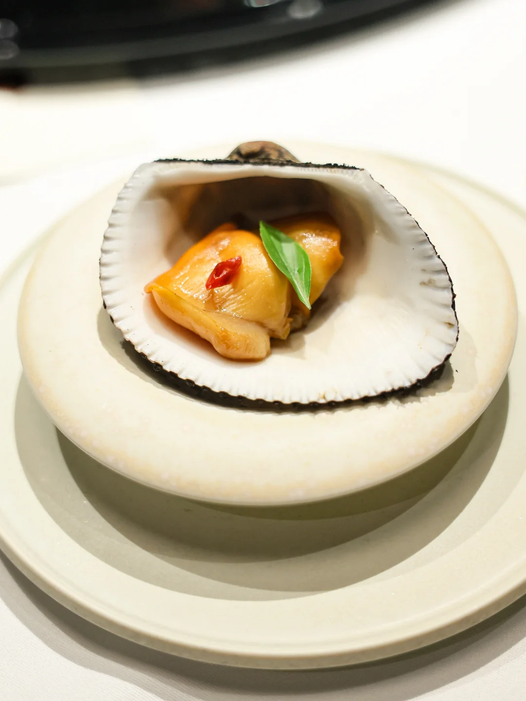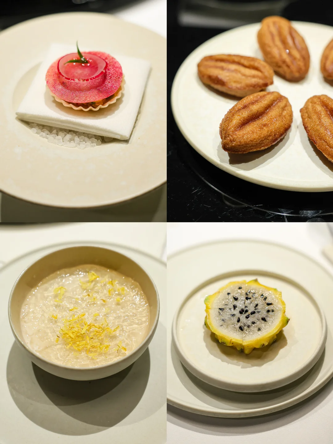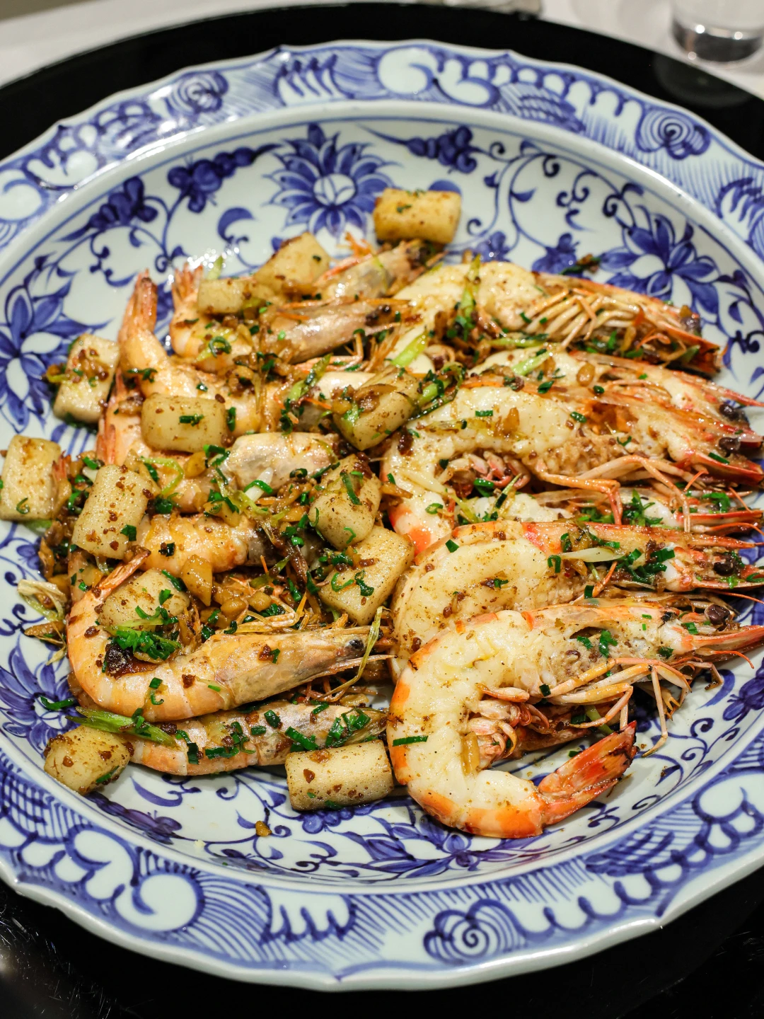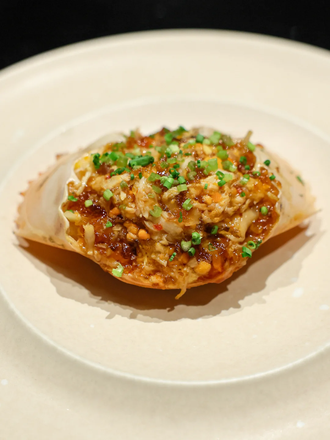 🧾虽然是八百年没换过的常规套餐,但吃起来还是觉得格外舒适! 🐟前菜里的螺片、大管、赤贝都是很中餐的调味:藤椒酱、三杯鸡做法或者九层塔风味,中餐胃熟悉的同时,海鲜品质也不差。 🦐加了一道酱油水炒虾,比之前更追求焦香感,底下没有汁水,反倒是脆壳的香气更迷人,斑节虾吃出了龙虾的口感,真的很爽!底下记得加年糕,焦香的糯米不要太灵! 🦀这个螃蟹自带锅气,比一般日料里的拆蟹啥的吃起来惊喜多了,确实好吃(但是蟹壳有点多。 🍮甜品估摸着也是开店以来就没换过…