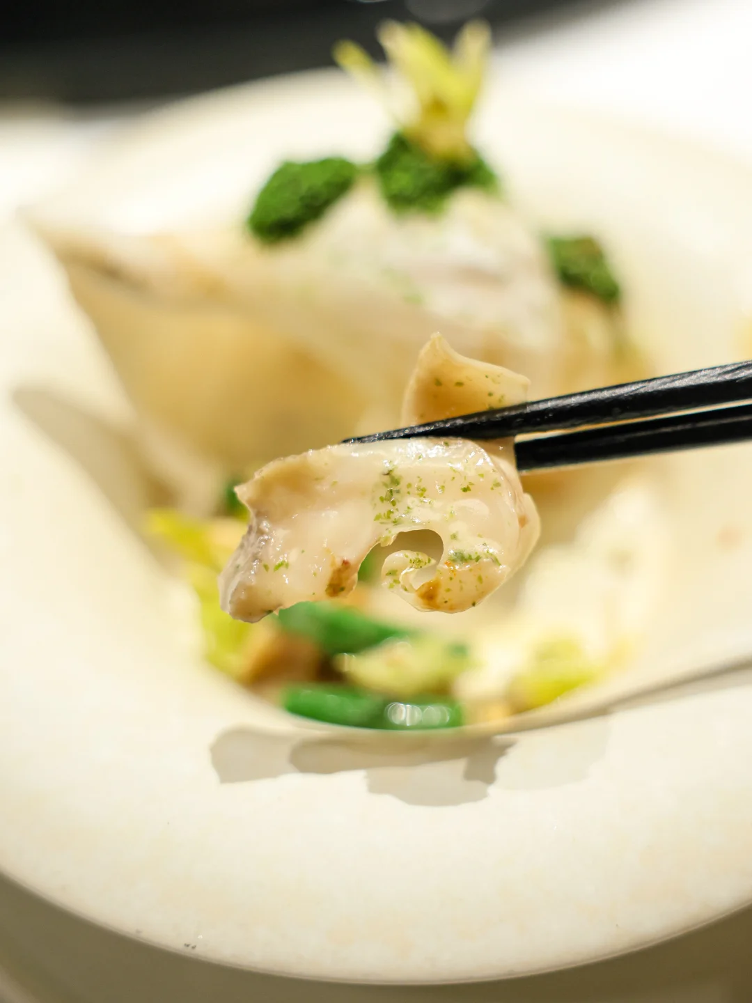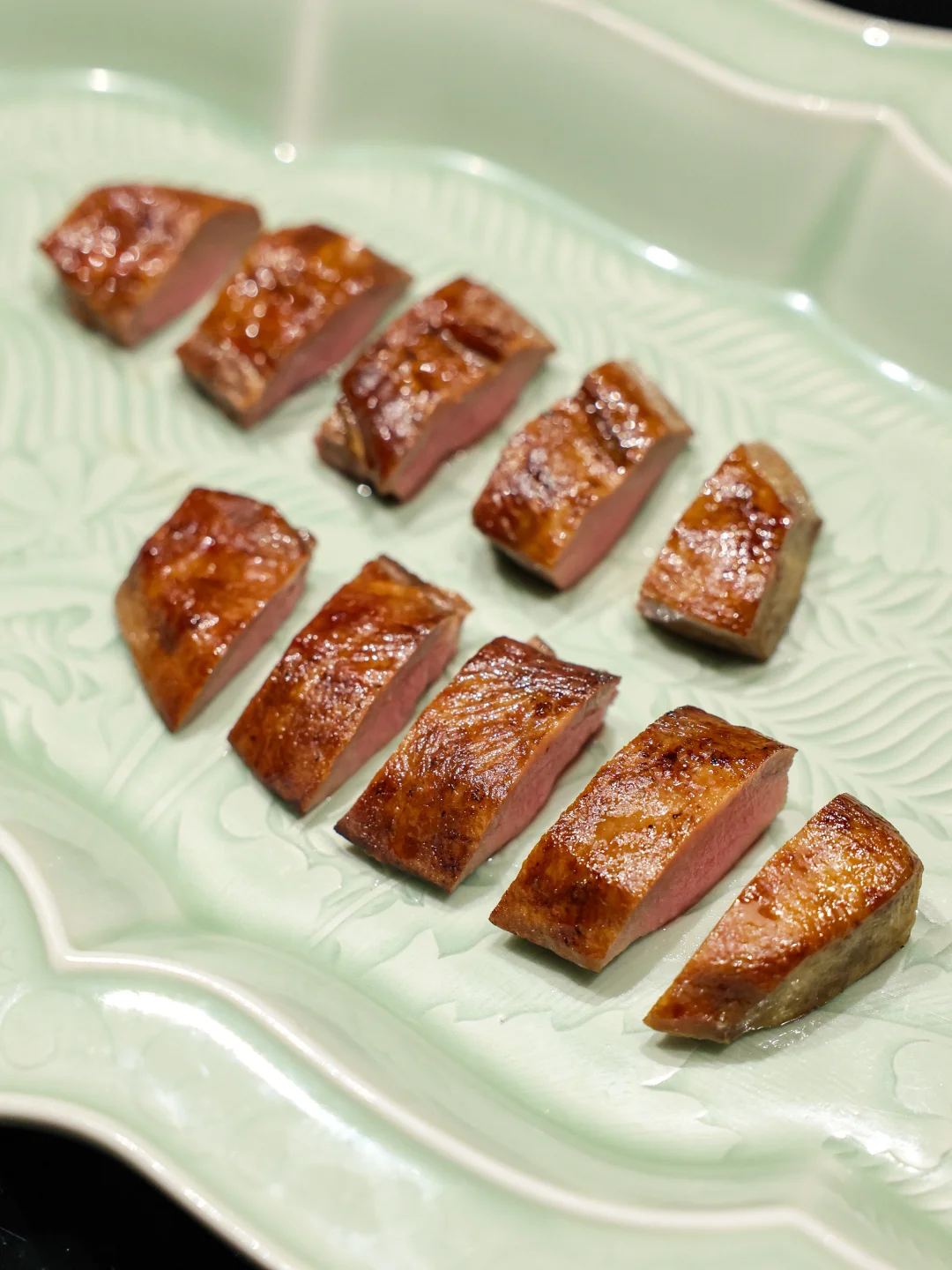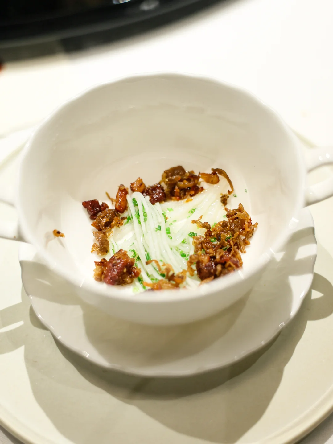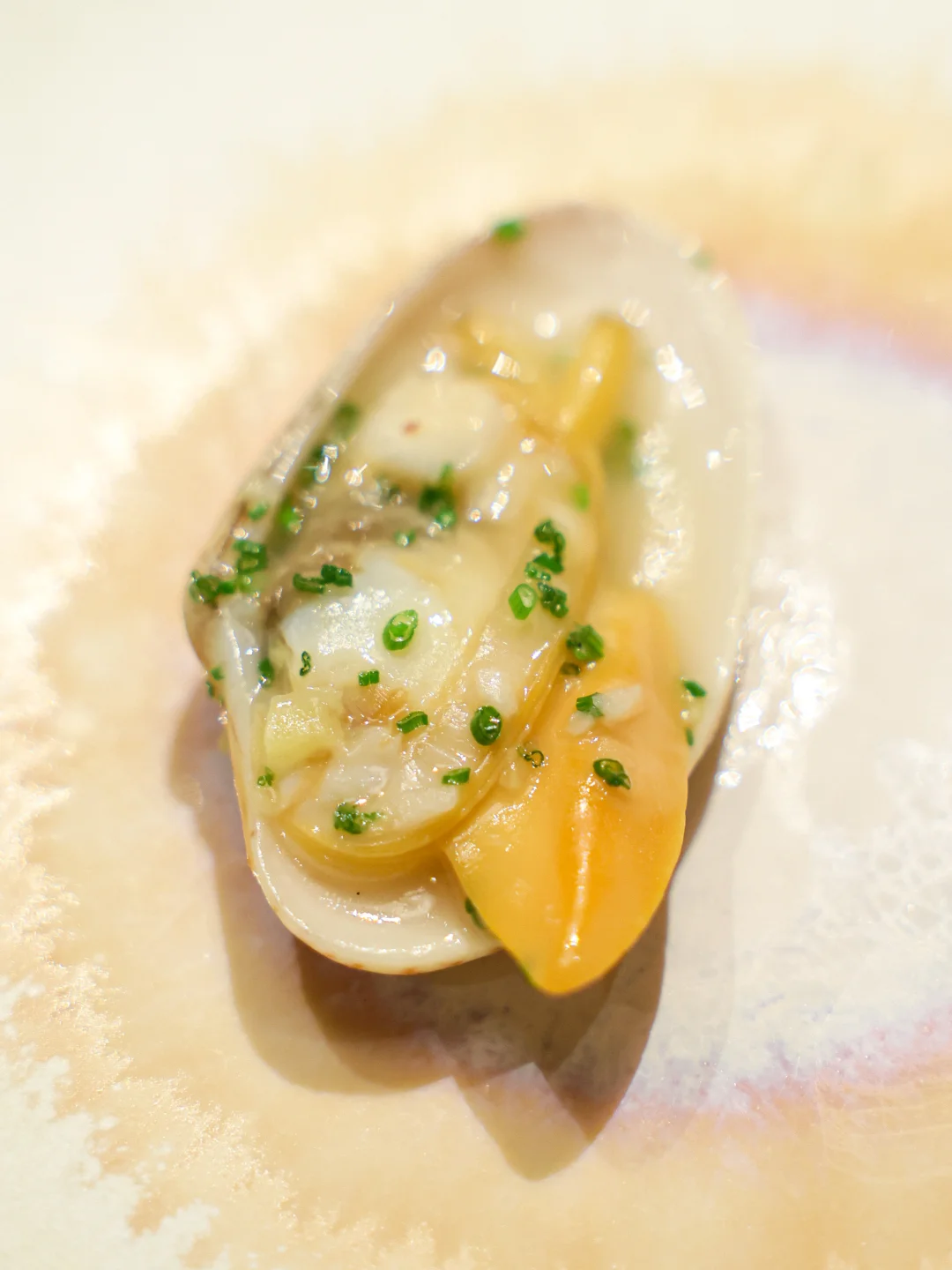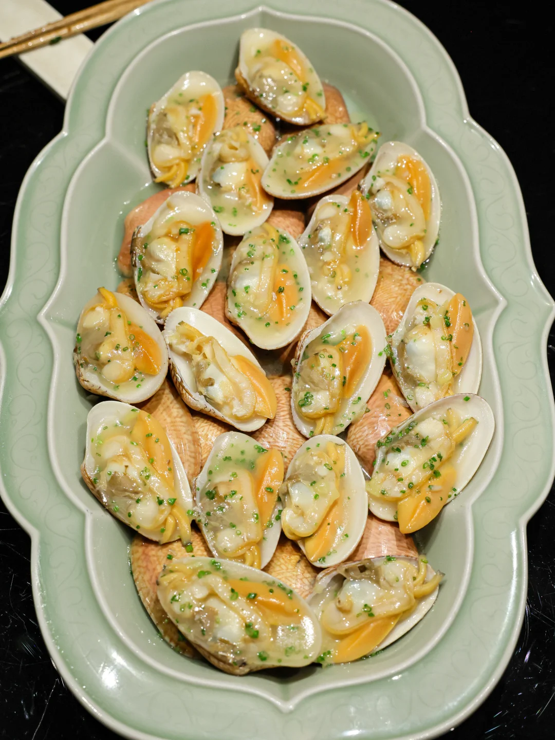 🧾虽然是八百年没换过的常规套餐,但吃起来还是觉得格外舒适! 🐟前菜里的螺片、大管、赤贝都是很中餐的调味:藤椒酱、三杯鸡做法或者九层塔风味,中餐胃熟悉的同时,海鲜品质也不差。 🦐加了一道酱油水炒虾,比之前更追求焦香感,底下没有汁水,反倒是脆壳的香气更迷人,斑节虾吃出了龙虾的口感,真的很爽!底下记得加年糕,焦香的糯米不要太灵! 🦀这个螃蟹自带锅气,比一般日料里的拆蟹啥的吃起来惊喜多了,确实好吃(但是蟹壳有点多。 🍮甜品估摸着也是开店以来就没换过…