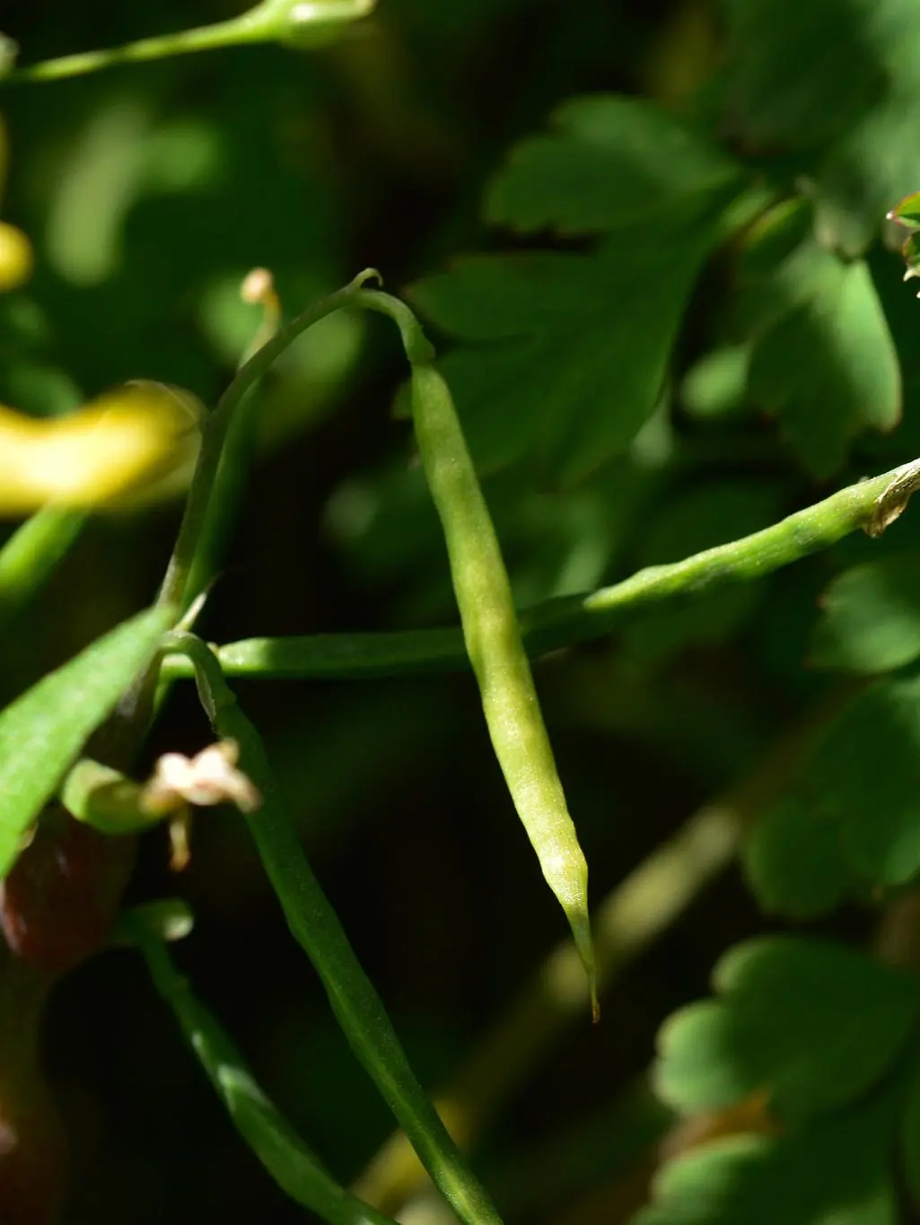 小花黄堇的花小,呈黄色,有的植株花朵颜色偏淡,甚至过段时间会变成白色。紫堇属的植物传粉相对单一,主要依靠昆虫传粉,特别是蜂类;昆虫会把口器从两枚花瓣中伸进去吸蜜,花粉也会在此时沾到昆虫的头胸部,这些携带了花粉的昆虫访问下一朵花,完成传粉的使命。