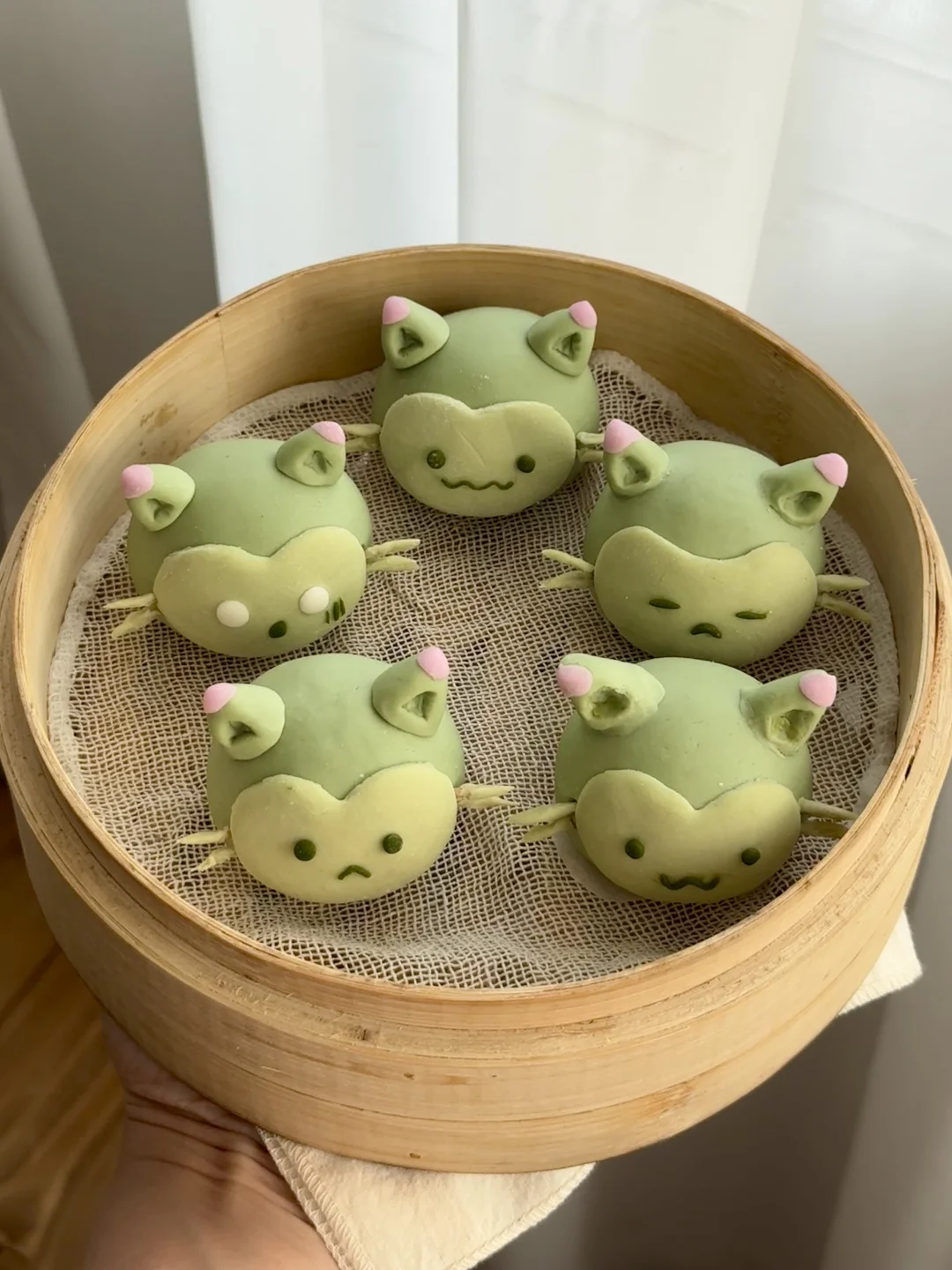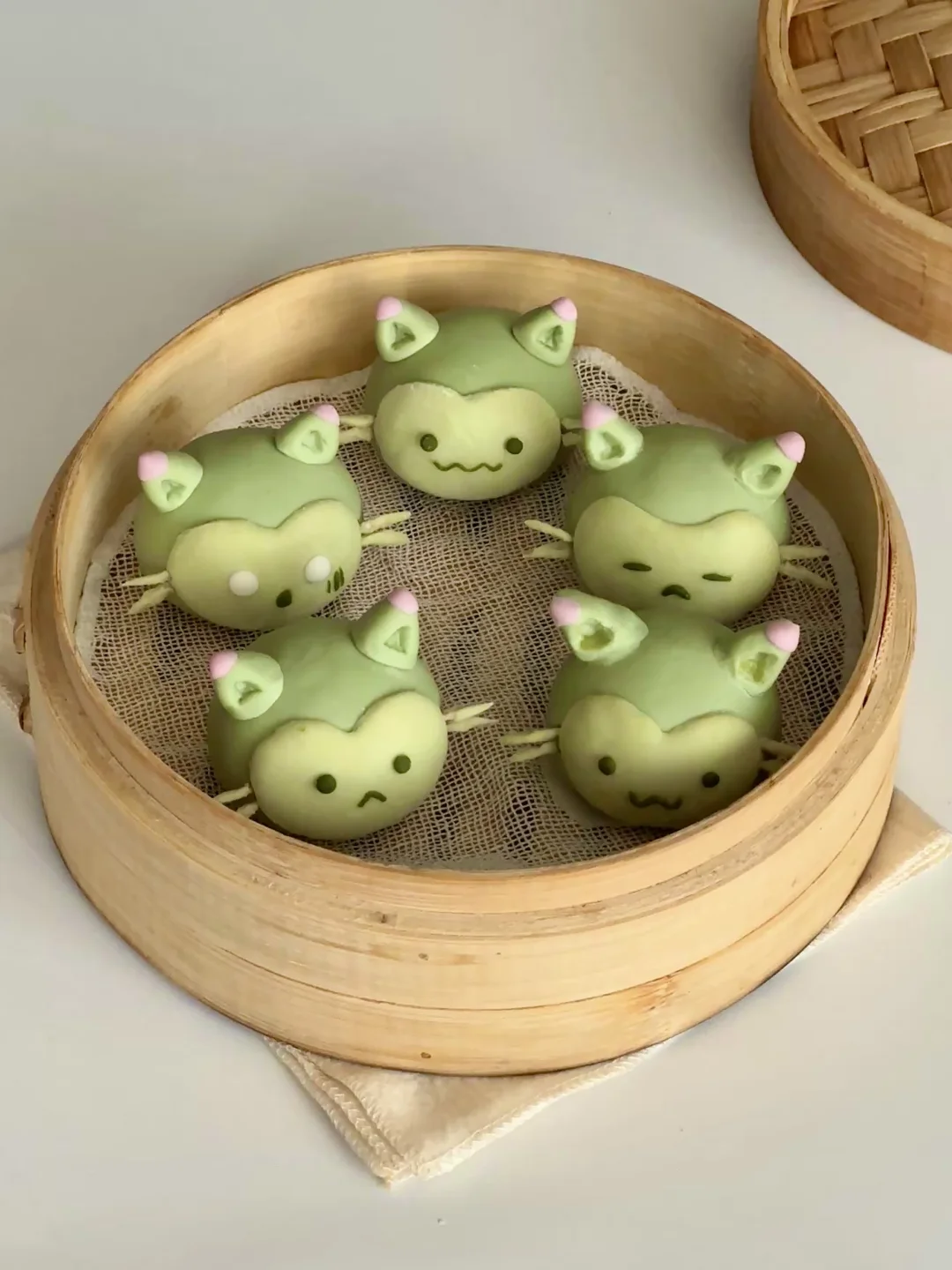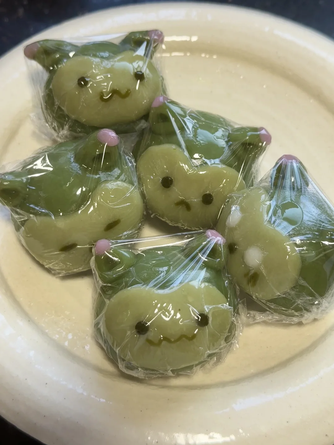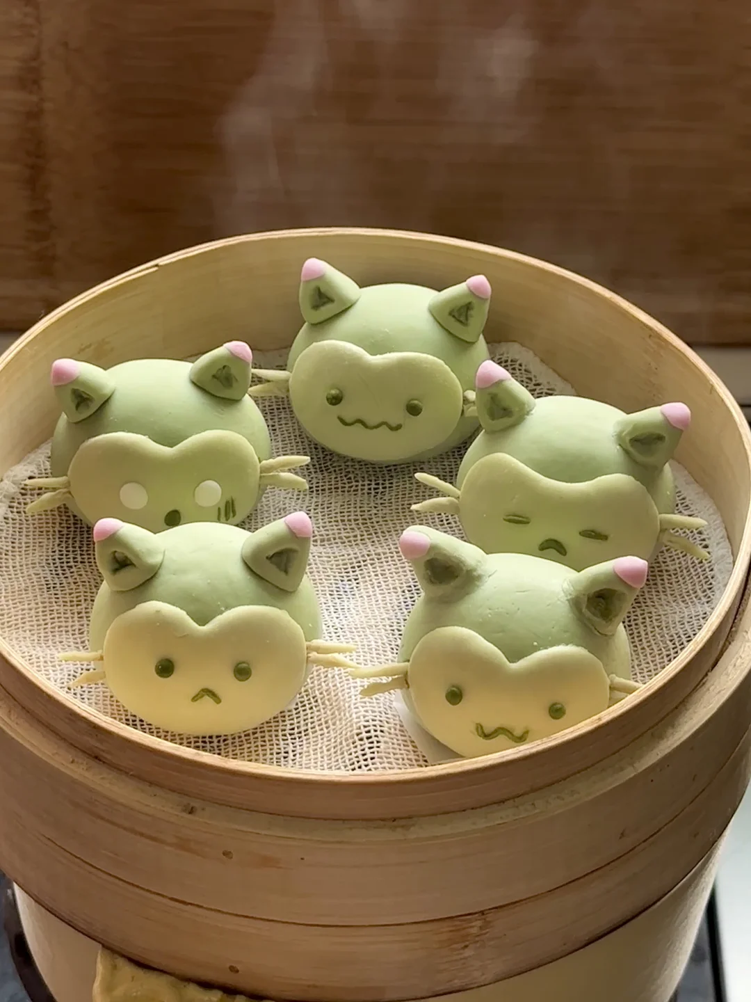 3️⃣另准备一份糯米面团调色,给青团加上喵喵的耳朵和表情