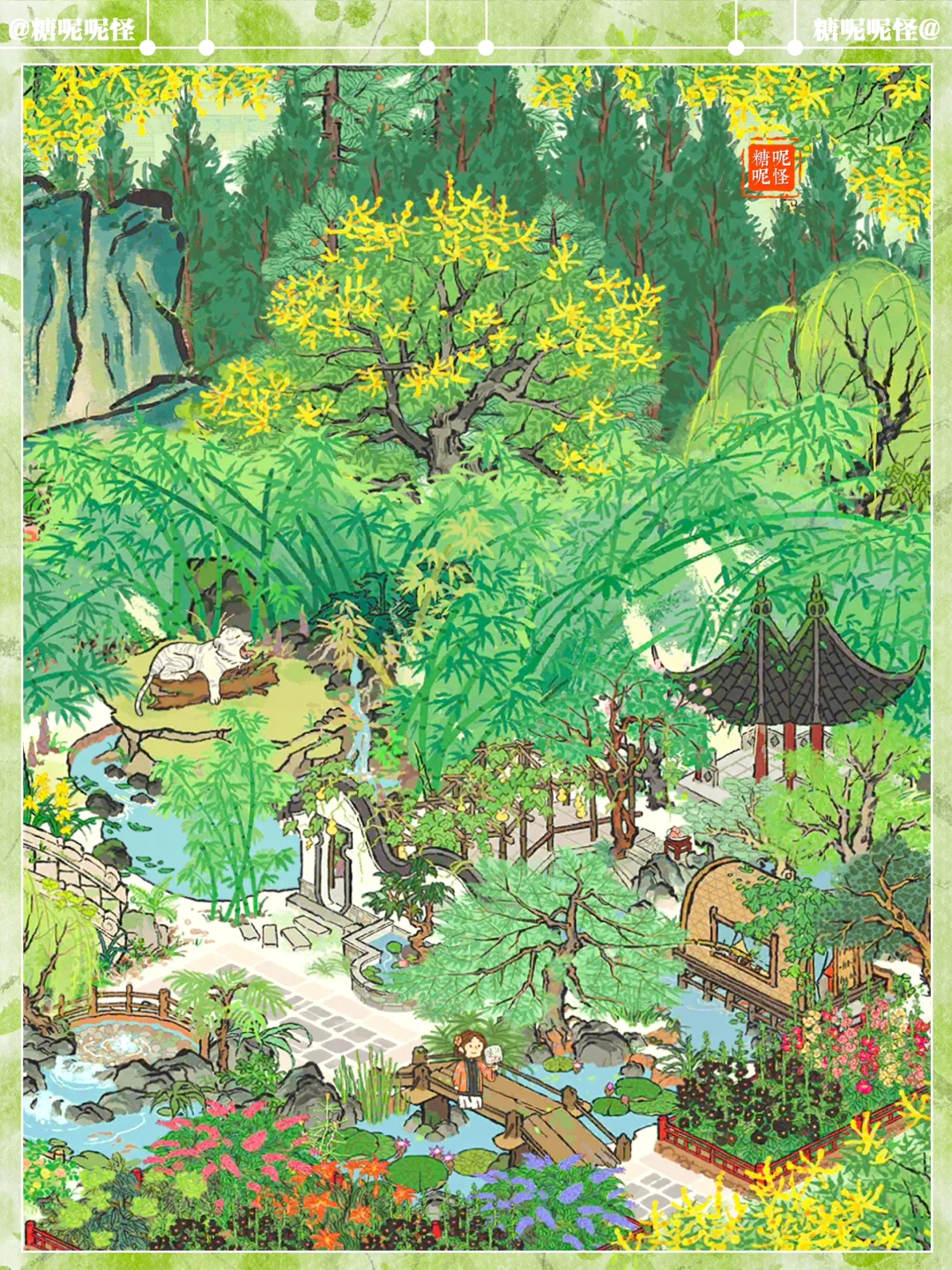 🌿今日江南 🌿马厩歇马,走过胜方亭,穿过吉祥长廊,去看小白虎啦[黄金薯R][黄金薯R][黄金薯R] 🌿建筑:白虎晨鸣|鸭池野趣|胜方亭|吉祥长廊|清夏木栾|春日踏青|古柳迎春|一掌山|夏日垂钓|碧泉垂秀|青草池塘