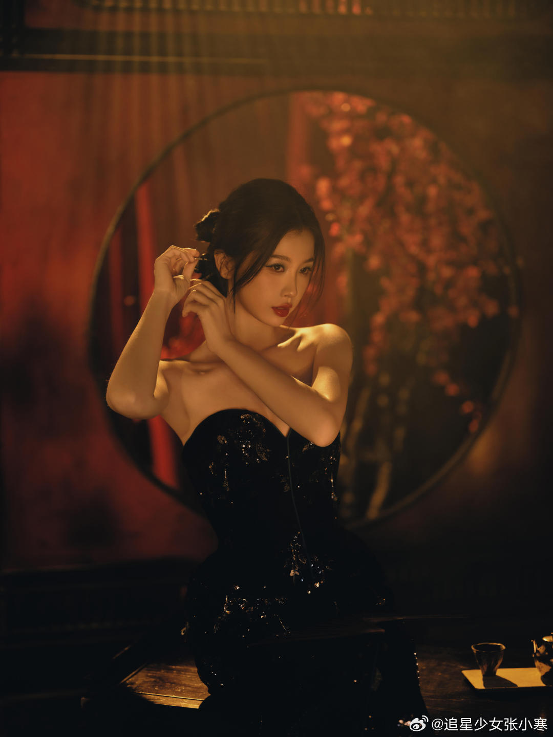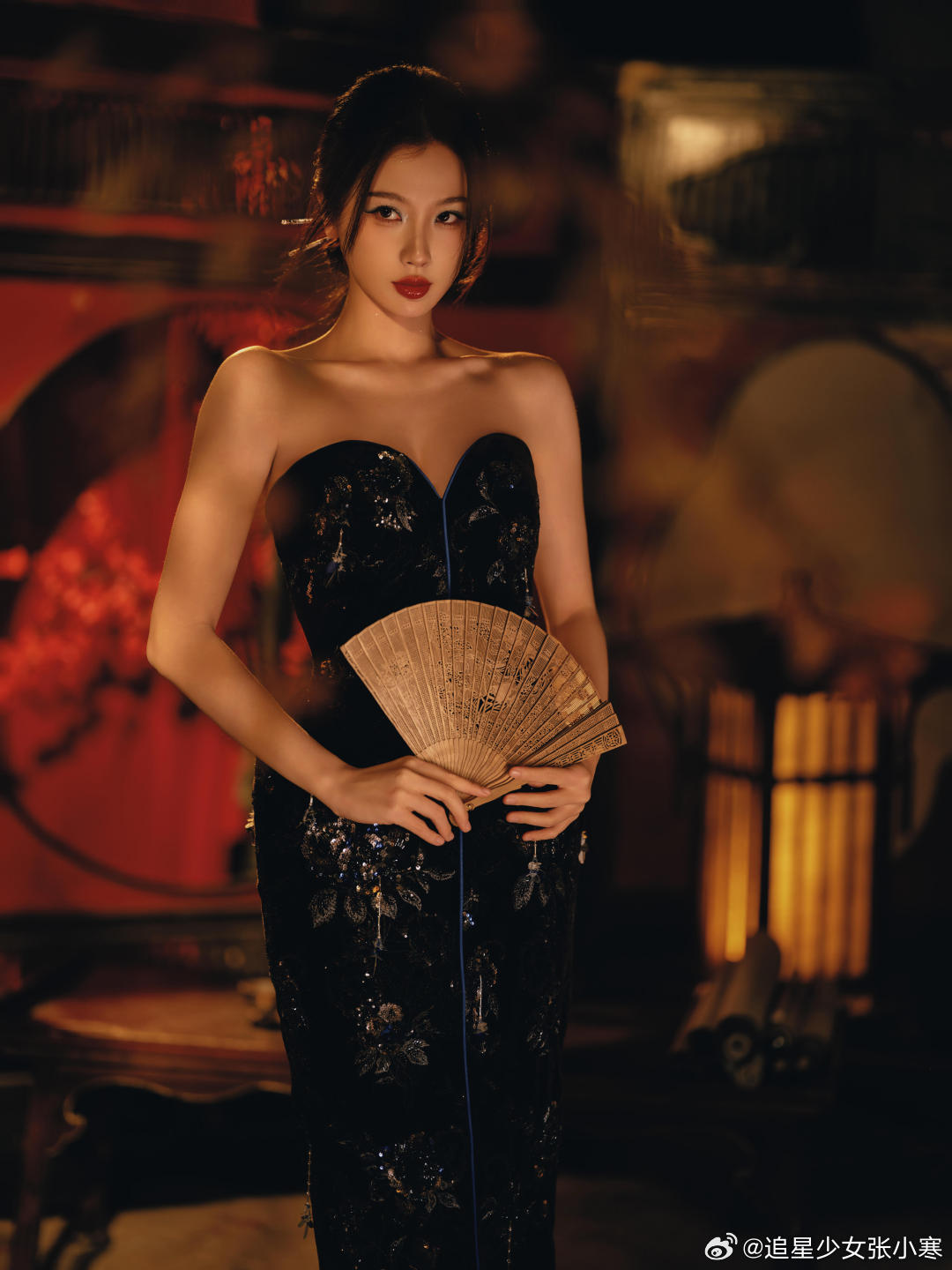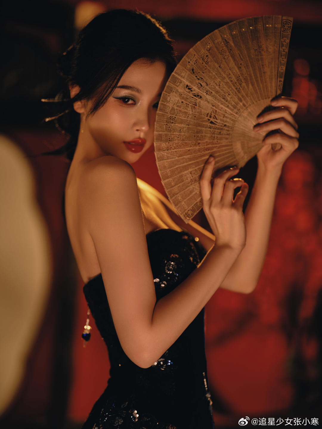 虞书欣黑丝绒抹胸裙虞书欣今日活动第二套造型,美得不知天地为何物了。虞书欣黑色银钻礼服