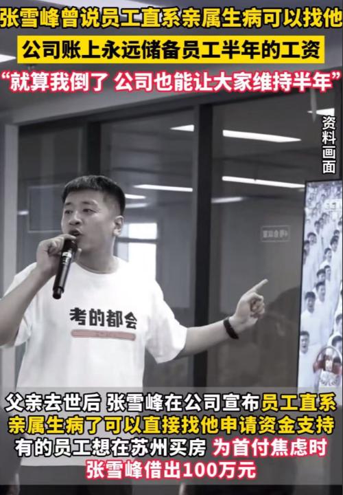 张雪峰去世后,一查他生前的的操作,惊呆了!他公司下的员工享受的福利待遇,简直秒杀一众企业,比公务员的待遇还要好!网友:这才是真正的中国好老板! 很多老板嘴上喊着“以人为本”,转头就逼着员工996,算计着怎么少发福利、多榨价值,张雪峰却反着来,把员工的日子放在心尖上。 最让人意外的不是福利多,而是每一项都落到实处,没有半点画饼的成分,全是能直接改善员工生活的实在好处。 先说说大家最关心的休假,这一点直接把打工人的羡慕值拉满。他的公司实行上四休三,每周三固定休息,工资一分不少,这在996遍地的当下,简直是打工人的天堂。 不光是平时,每月还有3天小长假,月末周五直接放假衔接周末,从不搞调休补班那一套。每年还有两次带薪寒暑假,每次都超过18天,春节假期更是长达23天,去年2月份员工只需要上4天班。 算下来,他们公司全年工作日只有200多天,比国家规定的250天少了一大截,员工有足够时间陪家人、喘口气,不用常年被工作绑架。 薪资方面,张雪峰也从来不小气。公司薪资比同行业平均水平高出20%,新人无责底薪就有5000多,每天还有30到50元的交通补贴,不用员工自己承担通勤成本。 入职满1年有13薪,满2年直接涨到14薪,年终奖更是大方,去年光年终奖就发了2000多万,人均到手近6万,很多人干一整年工资都达不到这个数。 年会的时候,奖品更是实打实,iPhone、戴森、金条应有尽有,没有空奖,哪怕是阳光普照奖,也能让员工感受到诚意。 更难得的是,公司五险一金入职就缴,没有试岗期,而且是按全额基数缴纳,不像有些企业,要么试用期不缴,要么按最低标准凑数。 除了薪资休假,他连员工的终身大事和成长都考虑到了。员工在苏州买房,干满两年就能向公司申请无息借款,额度和当年年薪相当,直接帮员工省去银行贷款的高额利息,解决买房这个最大的难题。 入职满3年,员工想考研、读博或者读MBA,公司报销50%的学费,鼓励员工提升自己。 生育方面的福利更是贴心,一胎奖励2万,二胎4万,三胎8万,男员工配偶生育,还能拿到6666元红包和30天陪产假。 平时公司还会给员工和家人发大牌羽绒服,冬天有火锅补贴,年度体检、生日福利、结婚红包更是标配,没有一点含糊。 最让人破防的是,张雪峰生前还特意留了后手,公司账户上常年趴着2000万的专项资金,任何人都不能挪用,这笔钱刚好够200多名员工发半年全额工资。 他曾说过,就算自己出事,也不能让员工慌了生活,这份担当,在当下的创业公司里极为少见。 有人疑惑,张雪峰为什么要对员工这么好?其实答案很简单,他自己就是从底层拼上来的,北漂时挤过群租房、拿过低薪,知道打工人的难处。他淋过雨,就想给身边的人撑伞,不想让跟着自己干的员工,再吃自己当年吃过的苦。 他自己常年高强度工作,每天忙14个小时以上,甚至累到住院还在处理工作,最终因心源性猝死离世。可他再拼,也没忘了员工,把公司赚的钱,大多花在了员工身上,不搞末位淘汰,不搞内卷压榨,让员工能安心工作、踏实生活。 网友们看完这些福利,清一色都是羡慕,有人说“这才是真正的中国好老板”,也有人感慨“这辈子能遇到这样的老板,太幸运了”。现在很多企业,把员工当成可替代的零件,只想着压榨价值,却忘了员工才是公司最宝贵的财富。 张雪峰用自己的行动证明,老板和员工从来不是对立面,你对员工掏心掏肺,员工自然会全力以赴。他走了,但他留下的不仅是亿级资产,更是一种值得所有老板学习的经营理念——做企业,既要赚钱,更要对得起跟着自己的人。 不用刻意煽情,不用过度美化,这些实打实的福利,就是张雪峰最好的名片。他配得上“中国好老板”的称号,也值得所有打工人怀念,毕竟在这个内卷的时代,能被老板真心对待,真的太难得的。