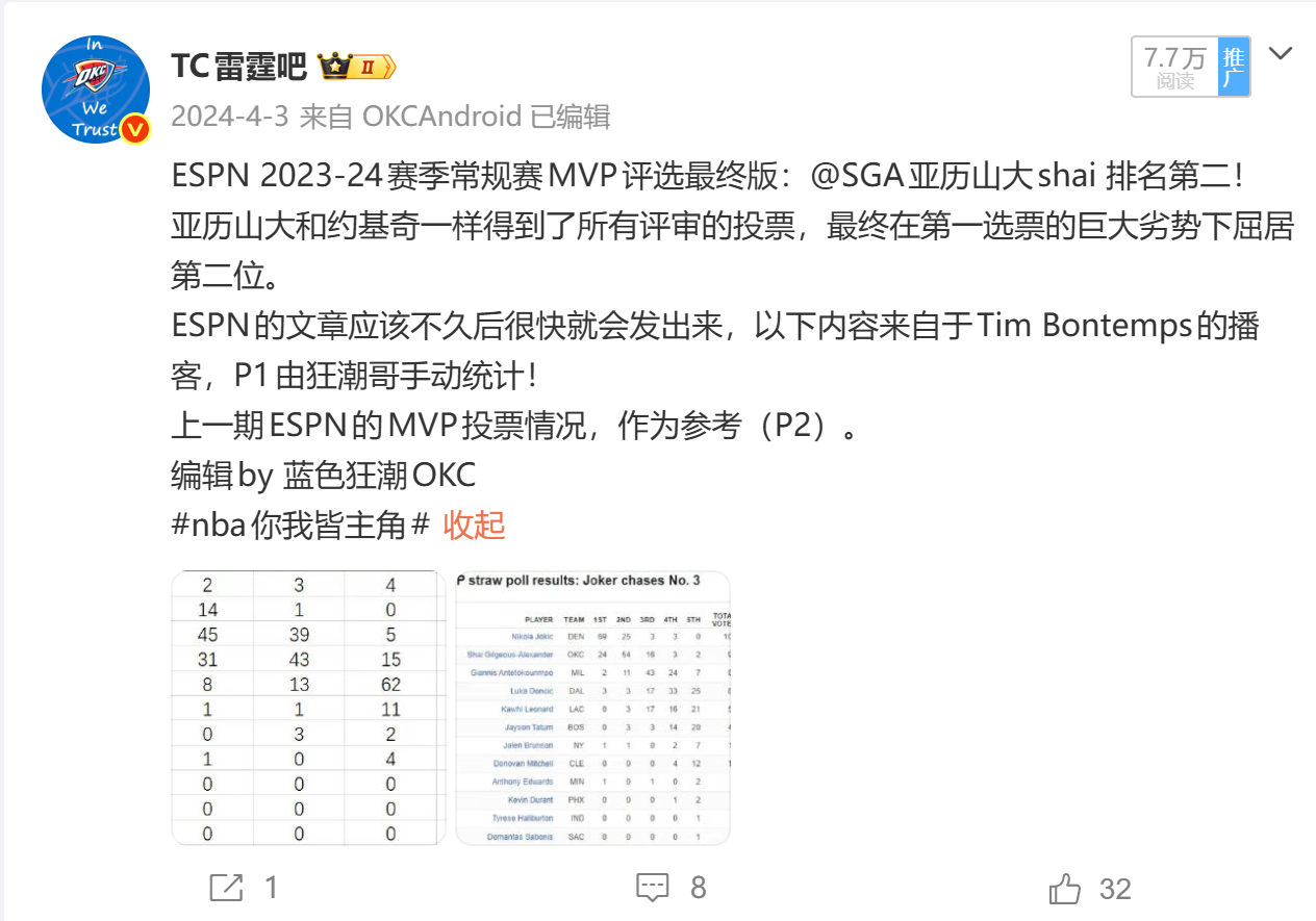 才看评论,为啥大家这么慌?去年就解释过了其实NBA官方这个榜说明不了太多的呀,这并不是什么“小雷人嘴硬”,多的也懒得说了。真正有影响力的是专家团的预投票,每年都和最终结果相差无几,去年是4月2日发的,前年是4月3日发的,大家静待就行啦。