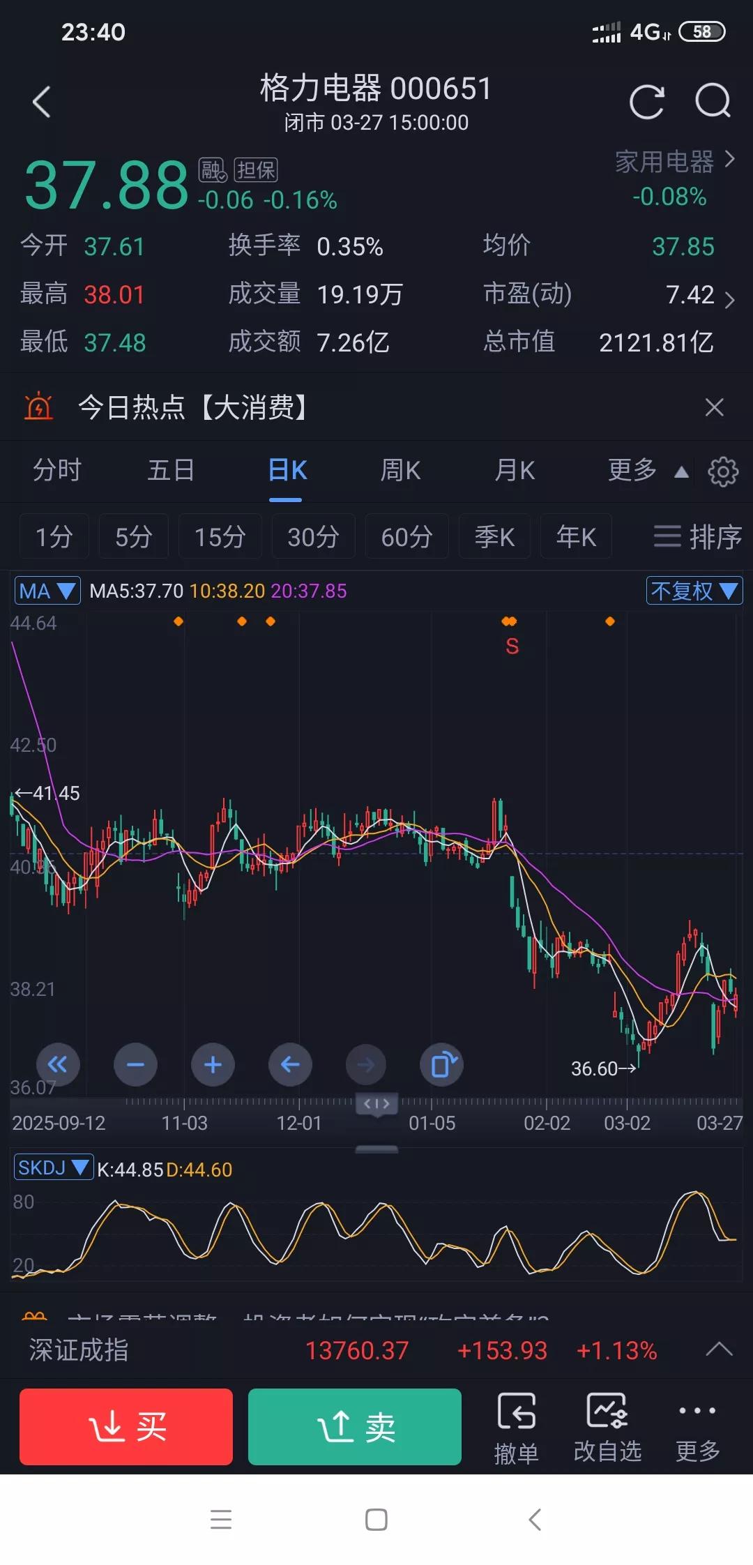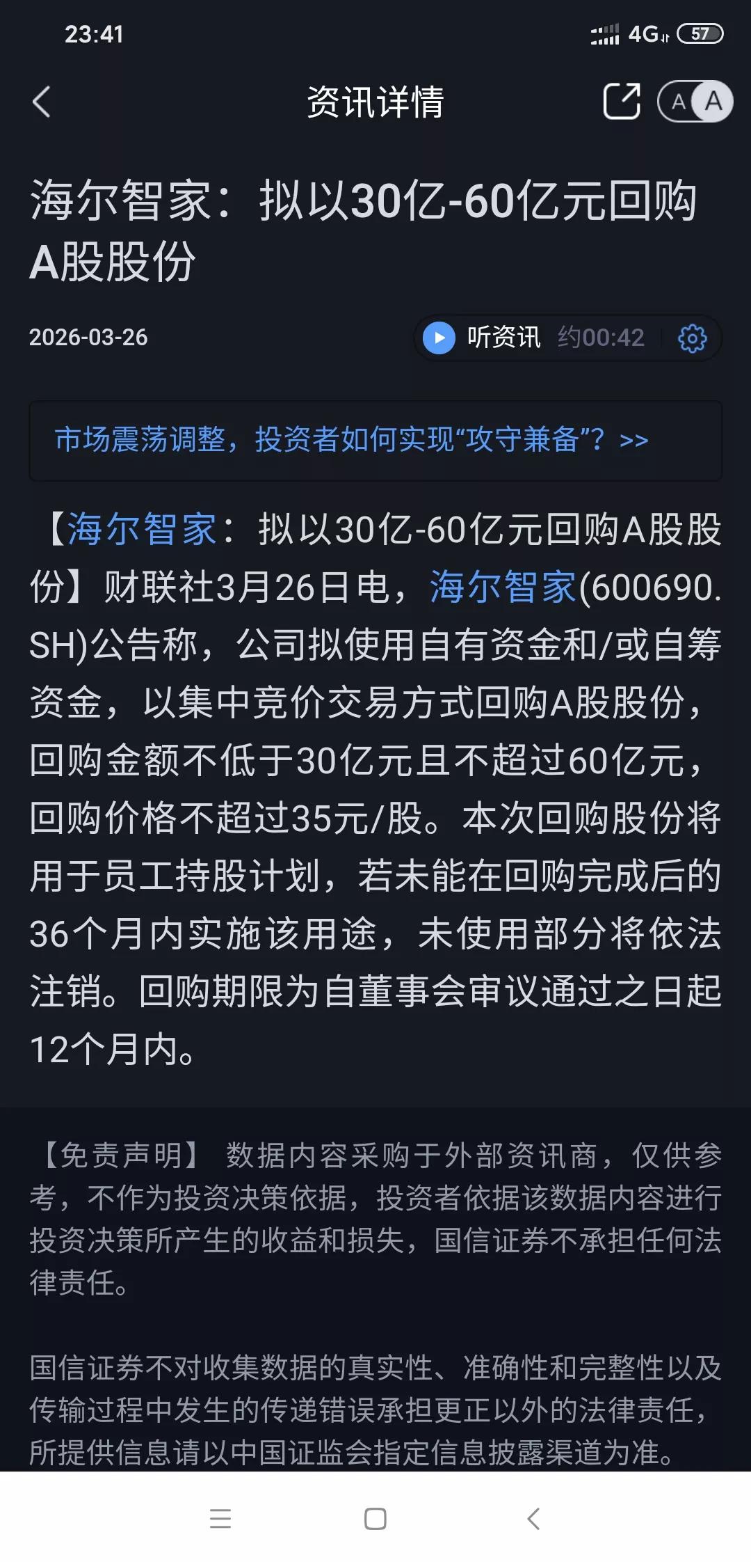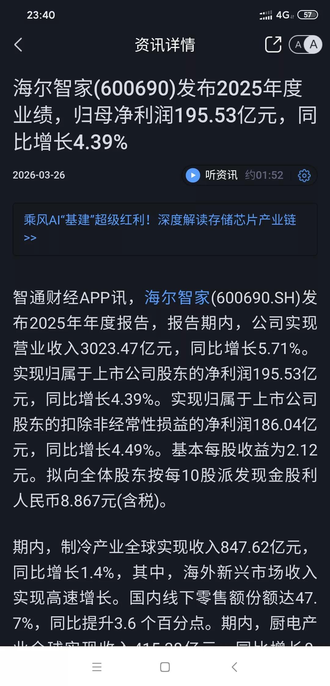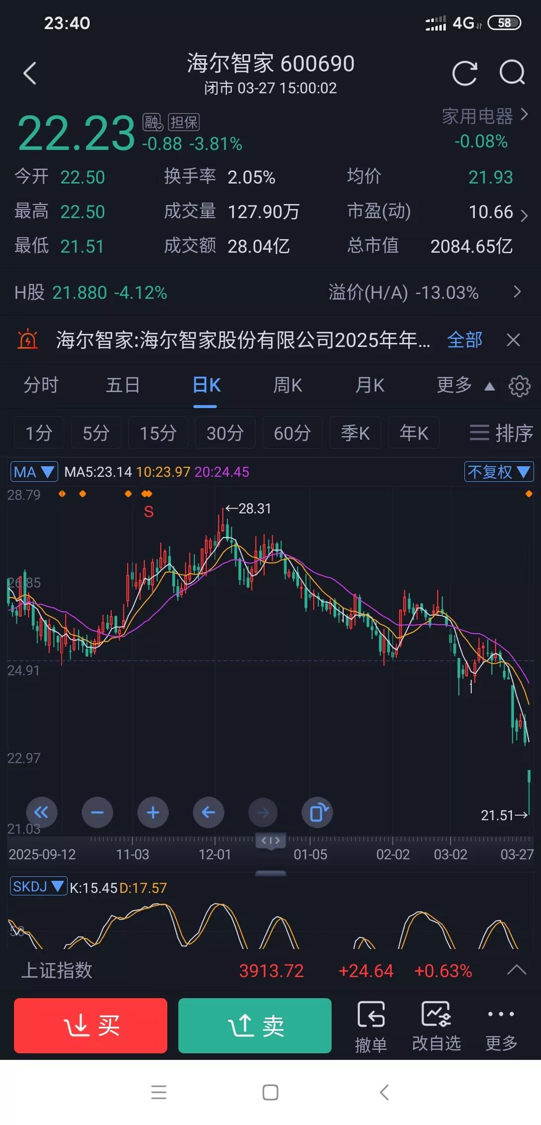 海尔大跌会不会拖累格力电器? 昨天海尔公布年报因年报业绩不如预期,估值又高,今天直接大跌。虽然不不如预期但是还是盈利100多亿的。 这就让人担心到时格力公布年报会不会也因为业绩不如预期而大跌呢?不过格力唯一的好处就是目前估值低,而且分红挺高这在一定程度上是个保障。 之前格力也有因业绩、分红不如预期而罕见跌停的情况。2022 年全年、2023 年一季度,格力净利润同比增长幅度有限,2022 年年度分红金额也不如前几年。 但现在格力这估值,也不用太慌。毕竟格力在芯片,机床,光伏,储能等方面表现都挺可以的你觉得呢?