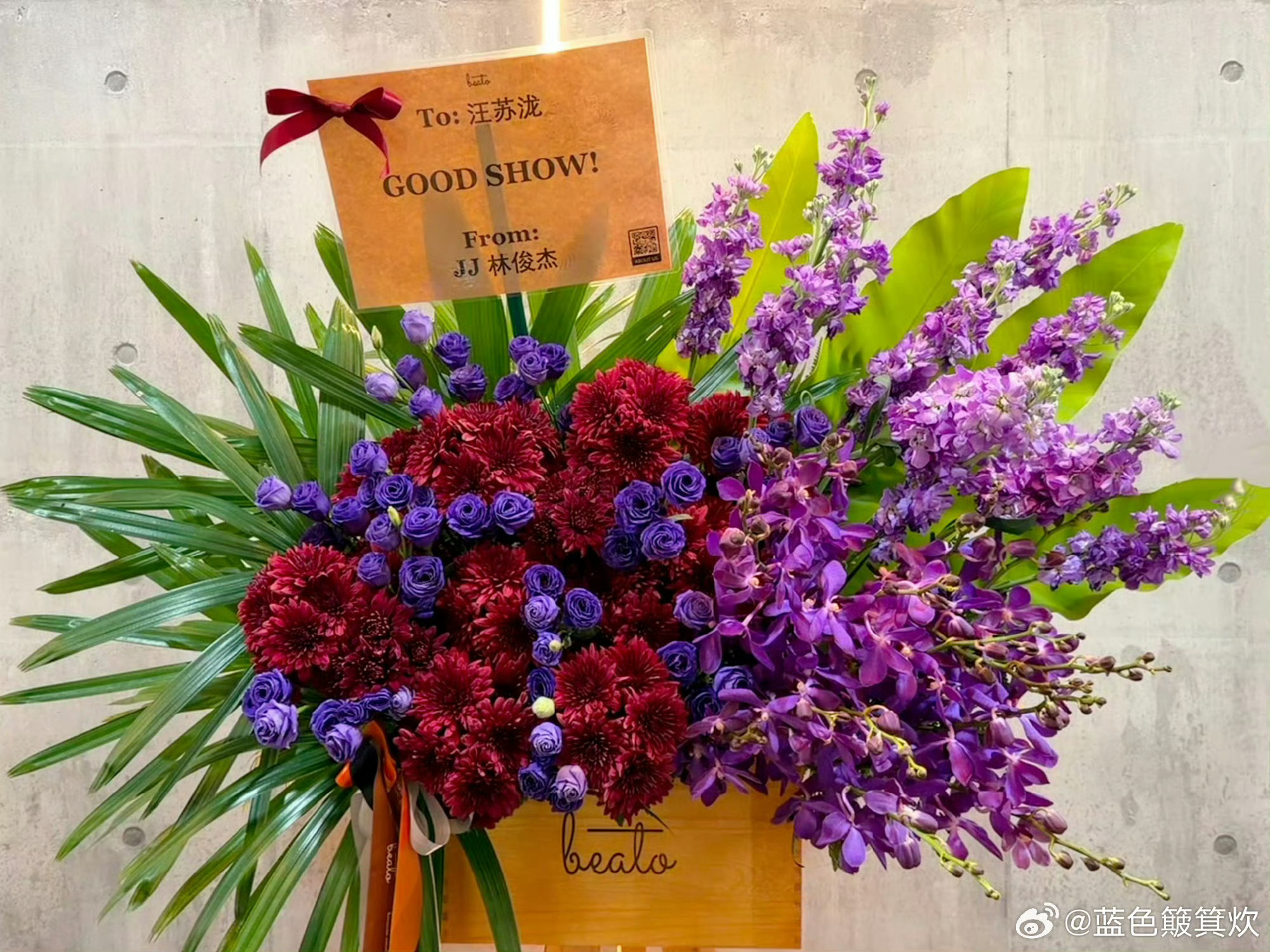 林俊杰给汪苏泷送花篮花篮寄情,音乐为盟。林俊杰为汪苏泷新加坡巡演送上的不止是祝福