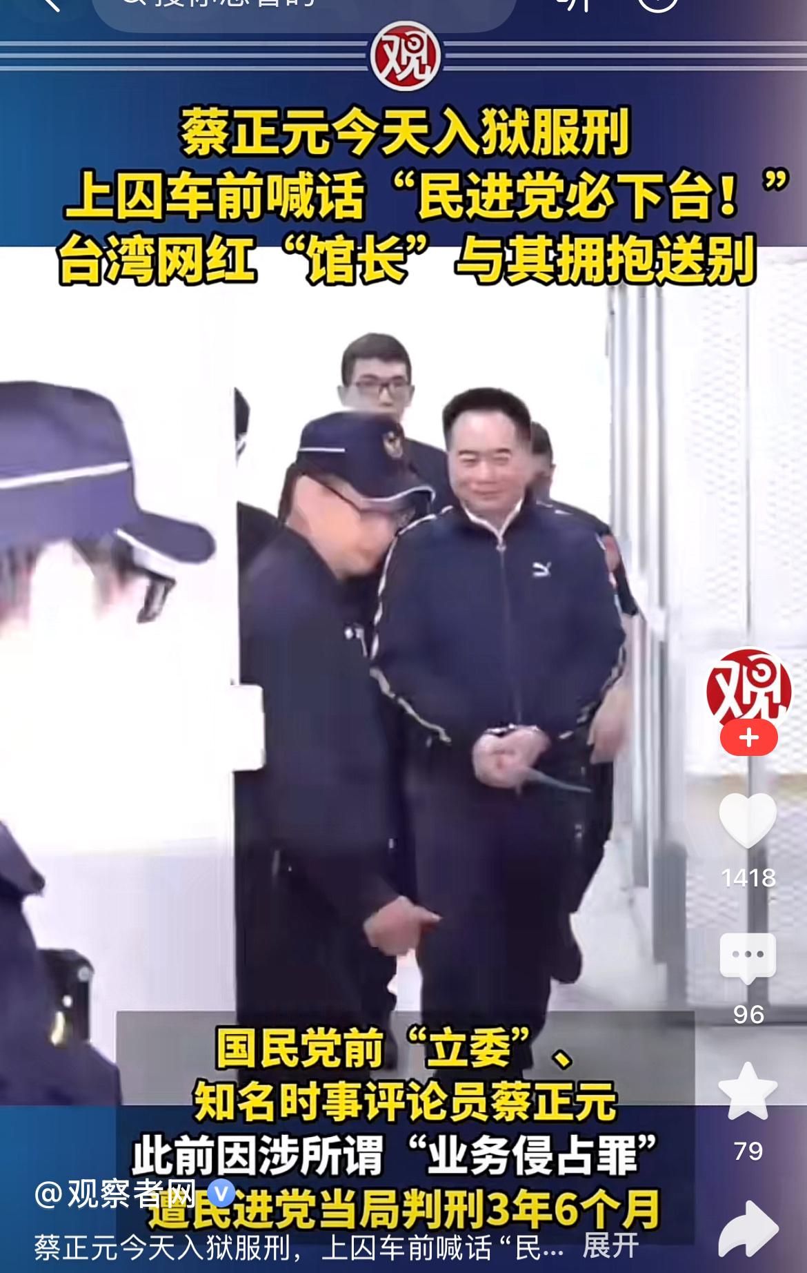 蔡正元入狱 很悲壮的感觉 感觉政治人物入狱并不是耻辱 而是勋章 荣耀 台湾居然还有政治犯[泪奔][泪奔][泪奔]