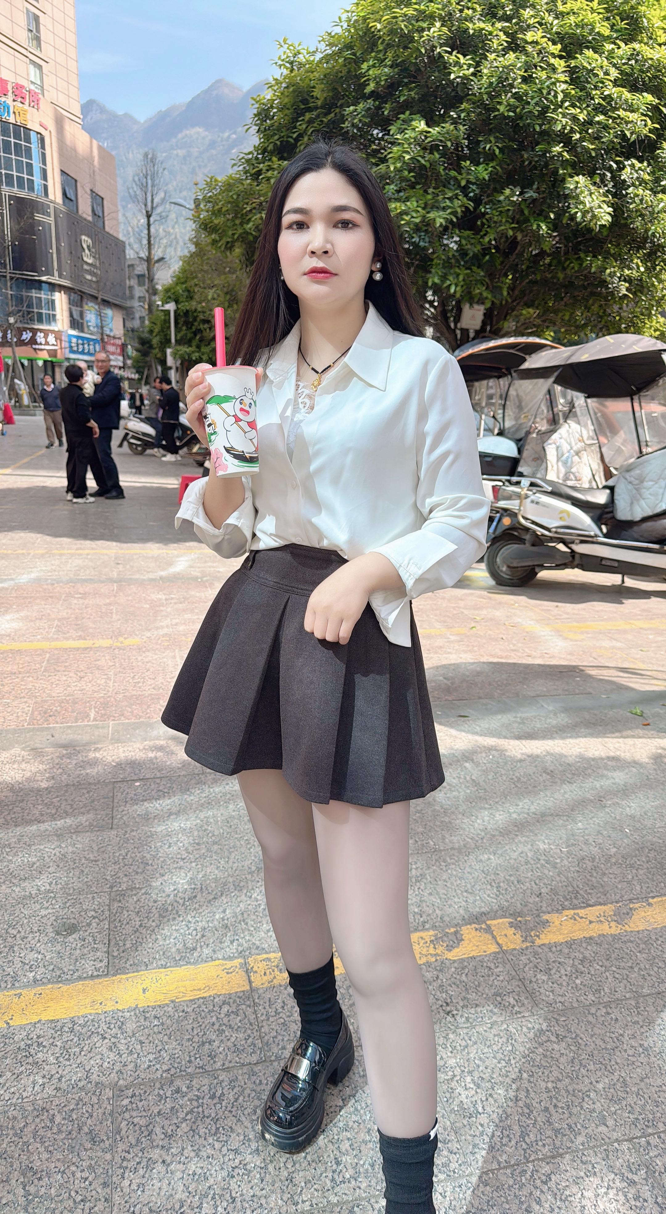 优雅白衬衫+黑色高腰裙,简约大方,职场必备!