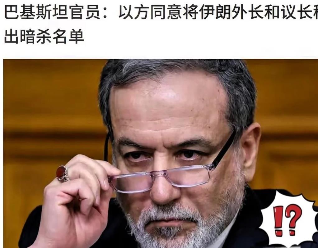 巴铁救下了伊朗议长和外长,以色列刚刺探到他们的坐标,正想要除掉。巴基斯坦的得到消息,紧急通知美国不能杀他们,如果杀掉他俩就找不到人谈判了。