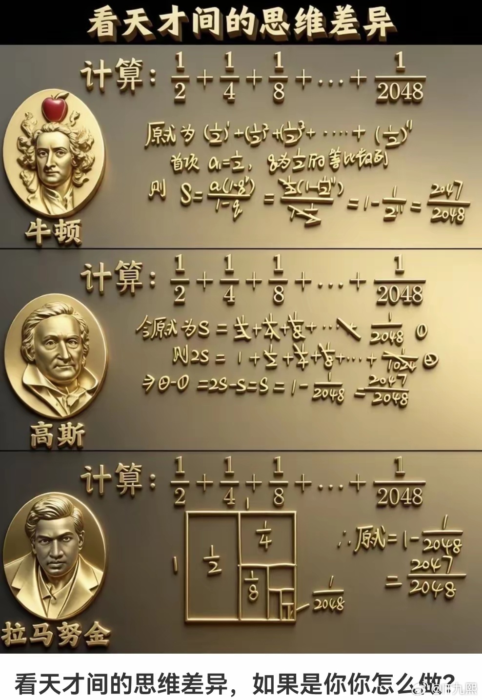 高斯的解法也很容易理解,他是先把总和设为S→然后两边同乘2→最后两式相减。