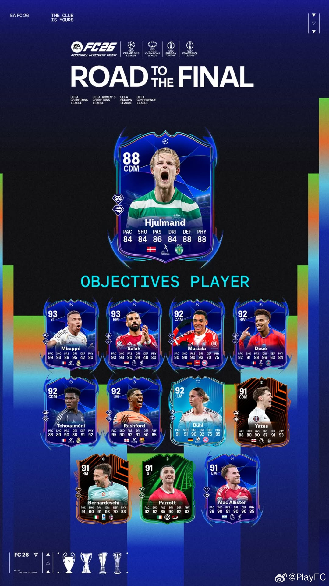 3月28日【新增目标任务】共 5 个1. 决赛之路联赛额外奖励目标 - 参加决赛之路联赛,获取专属奖励!所有奖励都不可交易。2. 决赛之路联赛晋级 - 参加决赛之路联赛,完成 2 项挑战中的 1 项以获取“决赛之路冠军杯”或“决赛之路竞争者杯”的参赛席位,踏上通往决赛之路!所有所获奖励均不可交易。3. 决赛之路冠军杯 - 参加决赛之路冠军杯,赢得比赛以获取专属奖励!所有奖励都不可交易。4. 决赛之路竞争者杯 - 参加决赛之路竞争者杯,完成以下 4 项挑战以获取专属奖励!所有奖励都不可交易。5. 决赛之路 Morten Hjulmand - 完成 5 项挑战中的 4 项以获取决赛之路 Morten Hjulmand 和组合包奖励。所有奖励都不可交易。