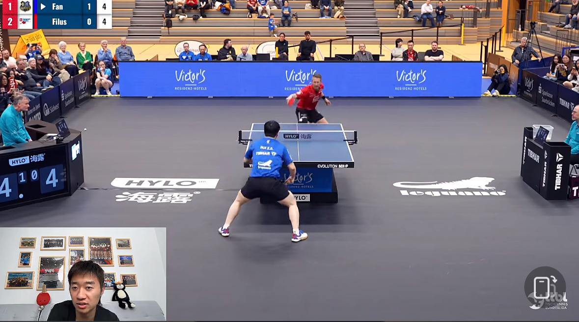 3月28日德甲樊振东一单二分3:0孟庆宇,3:0削球手菲鲁斯! 德甲第20轮比赛, 萨尔布吕肯VS富尔达, 第一盘樊振东3:0孟庆宇, 12:10,11:5,11:8, 第二盘阿帕斯0:3菲鲁斯 9:11,4:11,8:11, 第三盘,迈斯纳1:3孟凡博, 11:8,8:11,9:11,8:11, 第四盘樊振东3:0菲鲁斯 11:3,11:6,11:6 樊振东一单二分, 孟凡博与孟庆宇父子俩上场, 樊振东与对面教练的较量, 比赛结果不管, 上场先合影,孟庆宇是 富尔达教练兼队员, 打出来的表演赛太精彩!