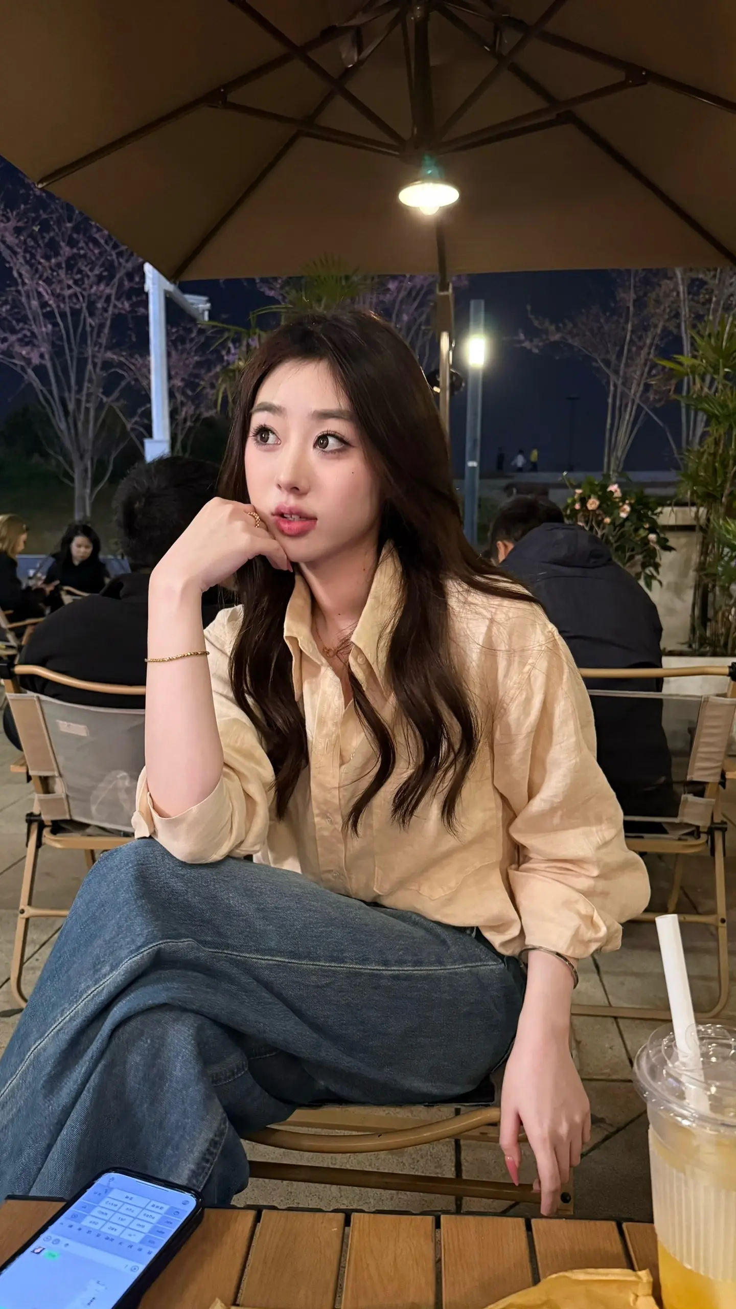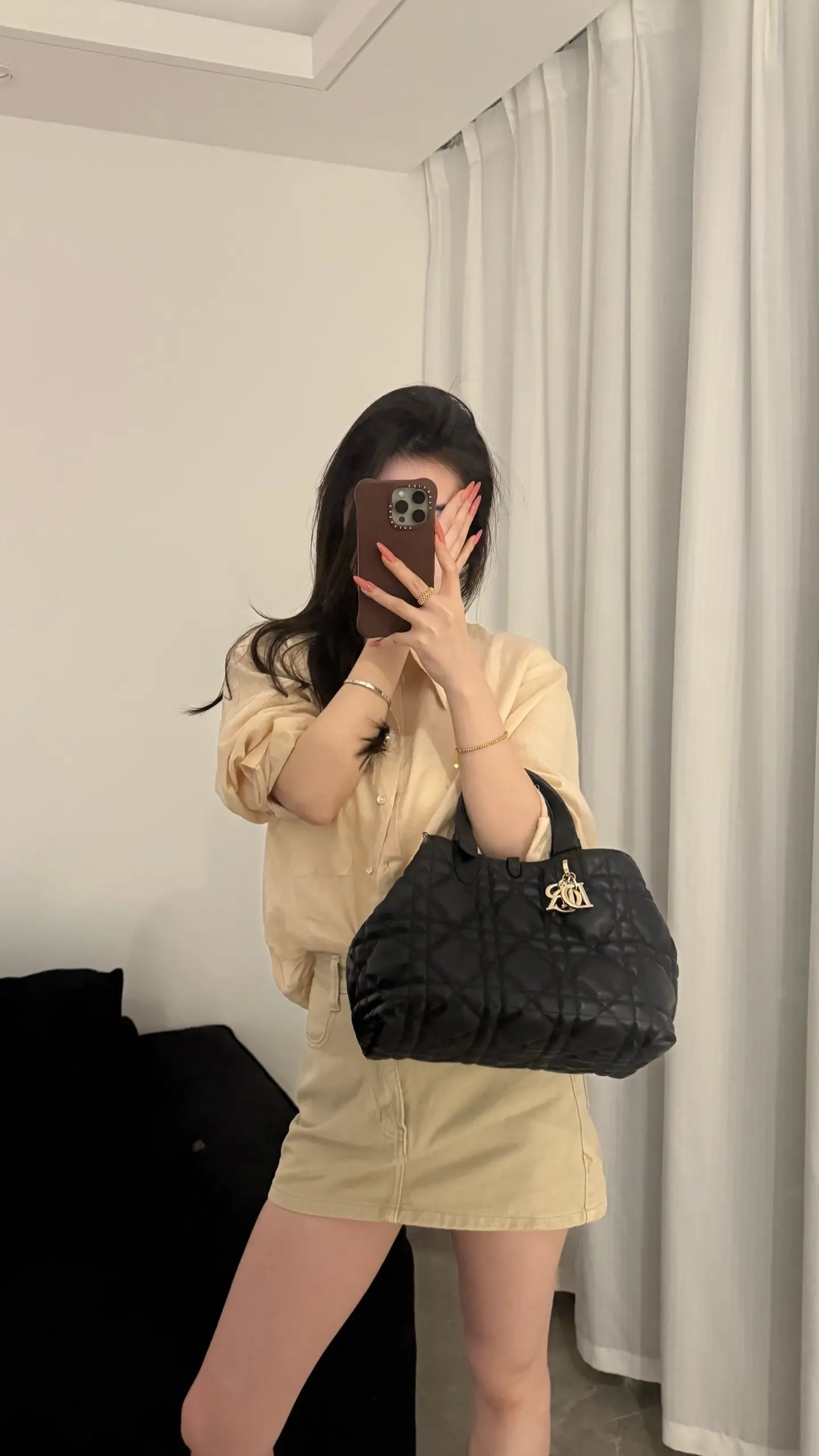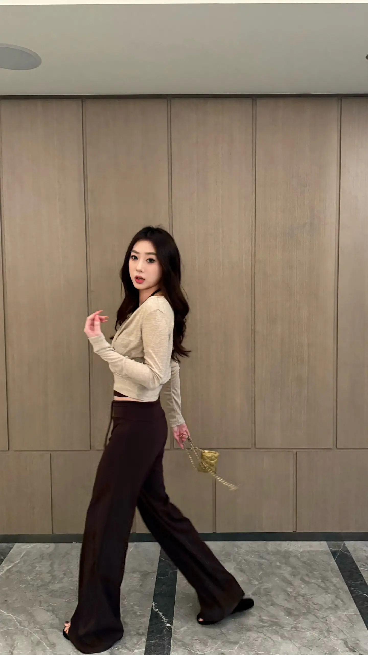 慵懒午后,浅紫色内衣搭配米色外套,舒适自在。