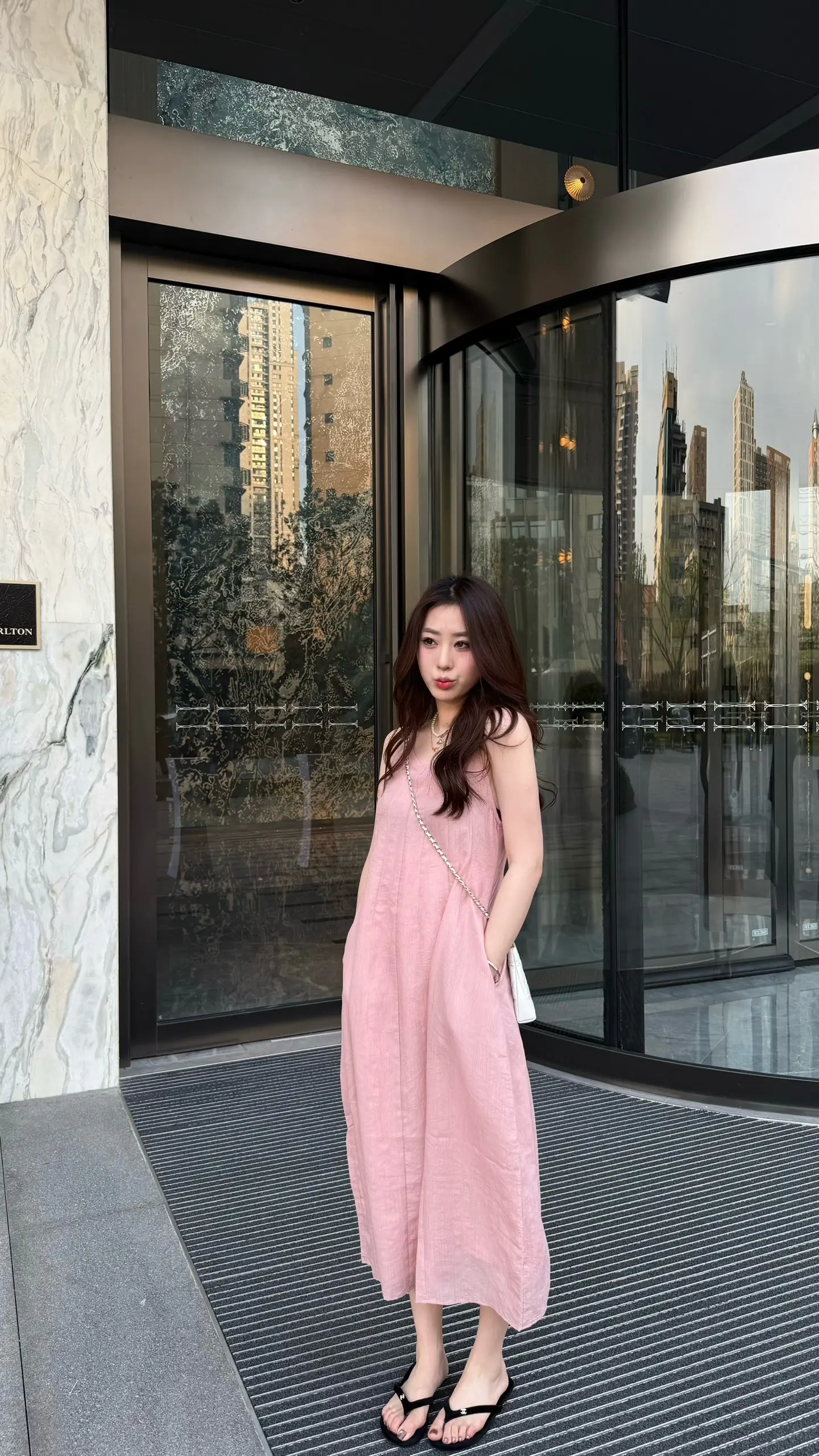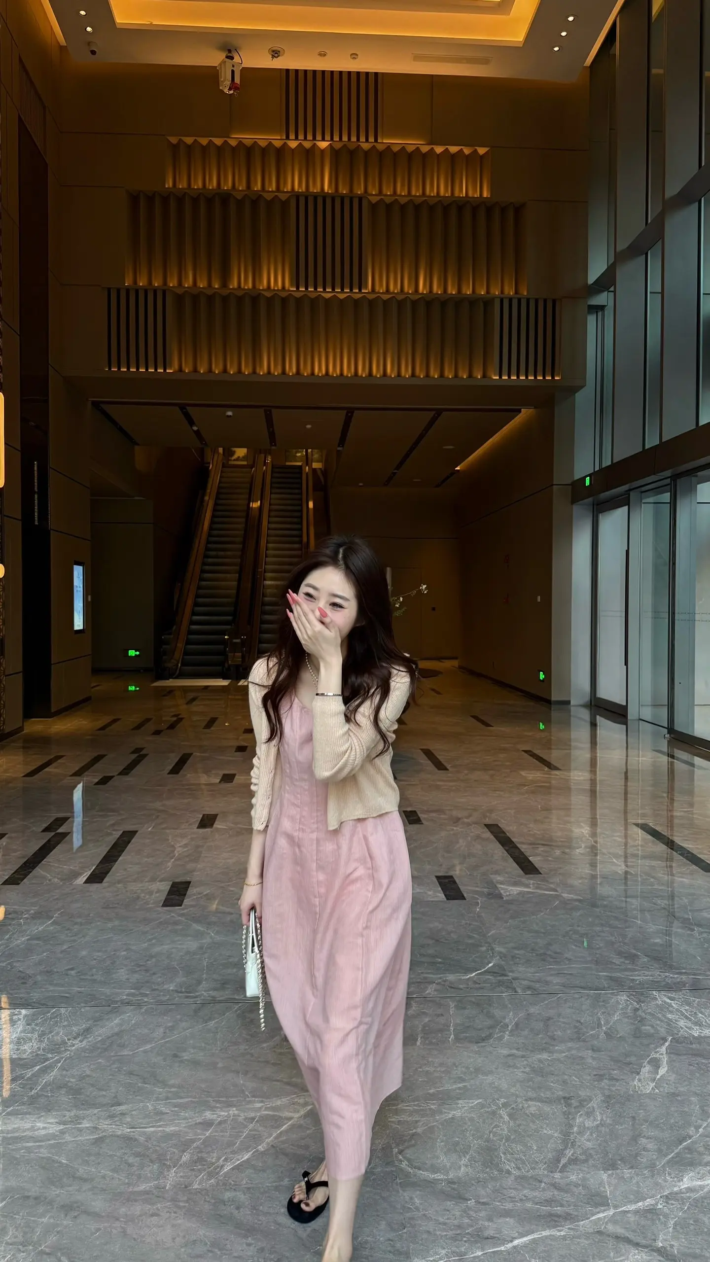 这个穿粉色开叉旗袍的小美女你真的不勒吗?这旗袍也太紧了吧!