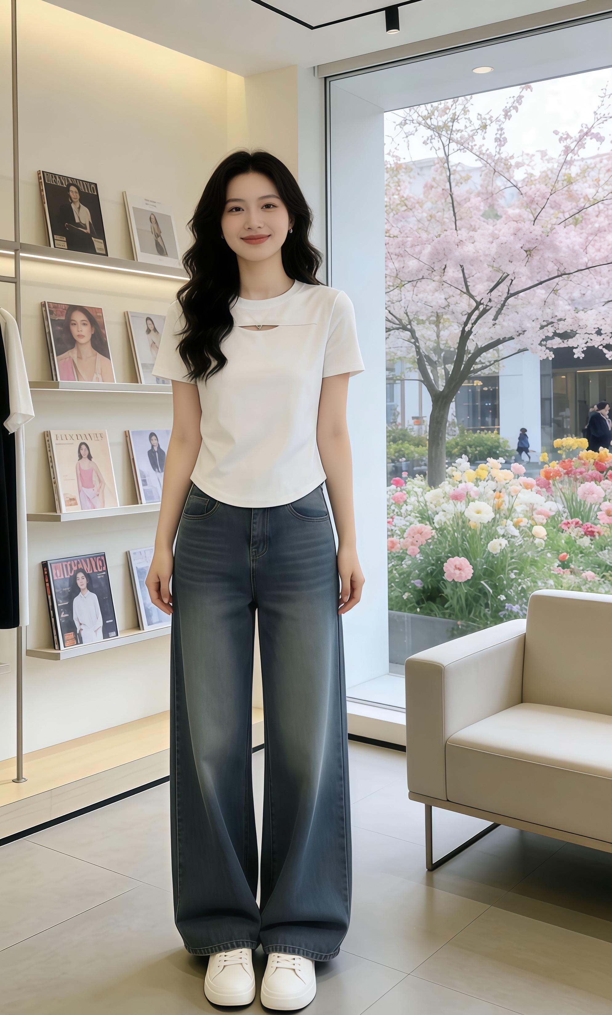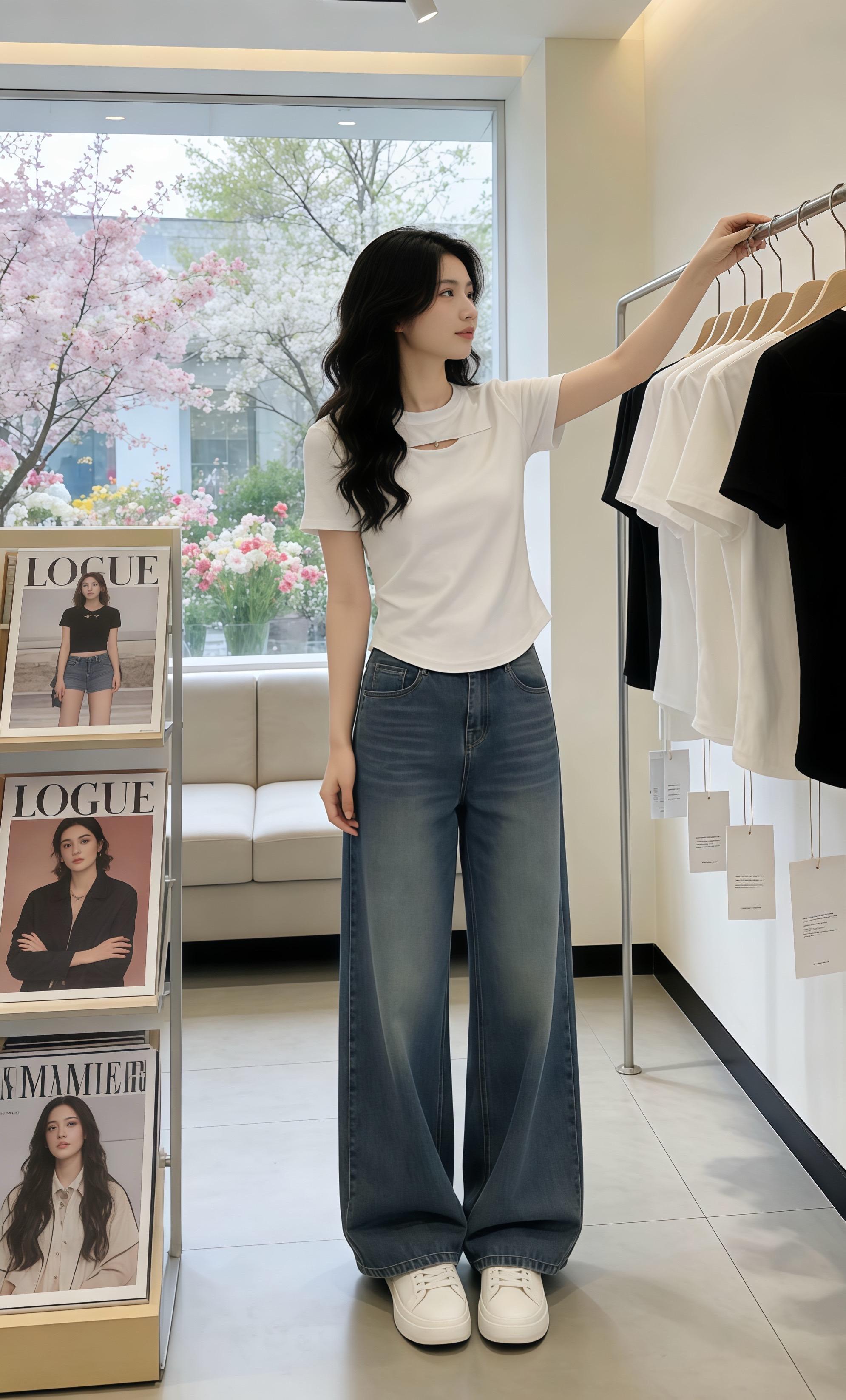 时尚穿搭指南:牛仔喇叭裤+露肩上衣,搭配白色小包,轻松出街!穿搭