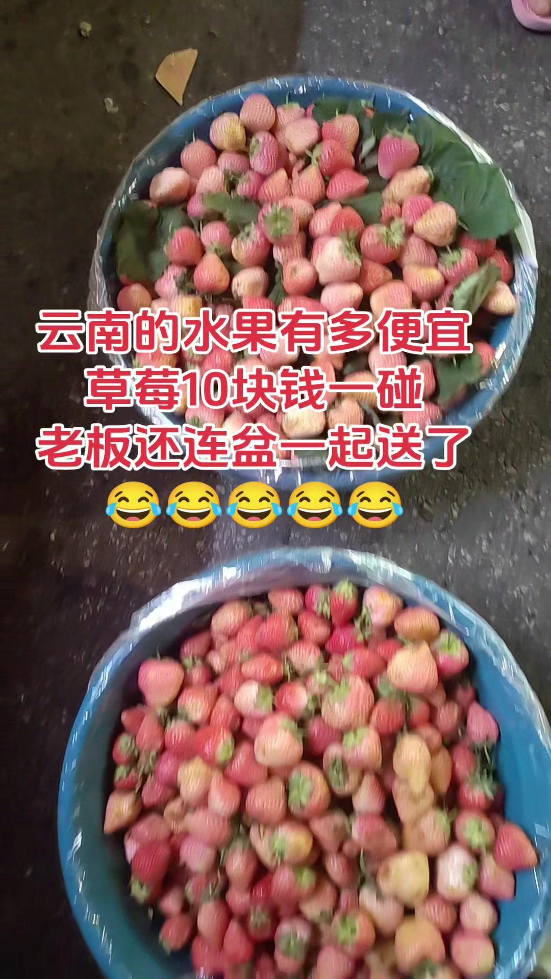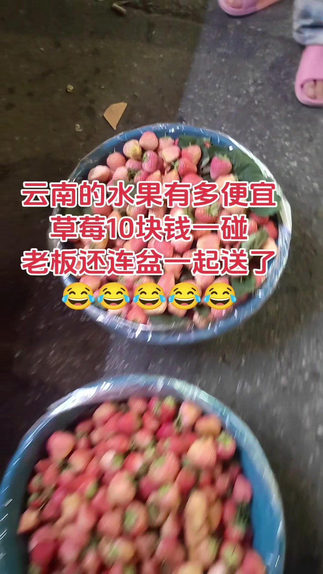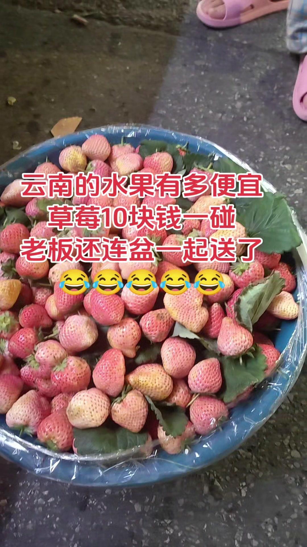 🍓云南草莓自由实现!10块钱就能get一大盆,老板还直接把花盆送了,这羊毛必须薅~ 之前一直吐槽外面草莓贵,来到云南才发现打开新世界!这里的草莓不仅个头大,一颗接一颗甜到心尖,10块钱就能买满满一盆,连装草莓的陶瓷小盆都白送,算下来草莓真的跟白捡一样~ 带盆回家装点水培绿植,旧物利用超实用,连草莓带着盆一起吃都不费事儿,感觉自己赚翻了~