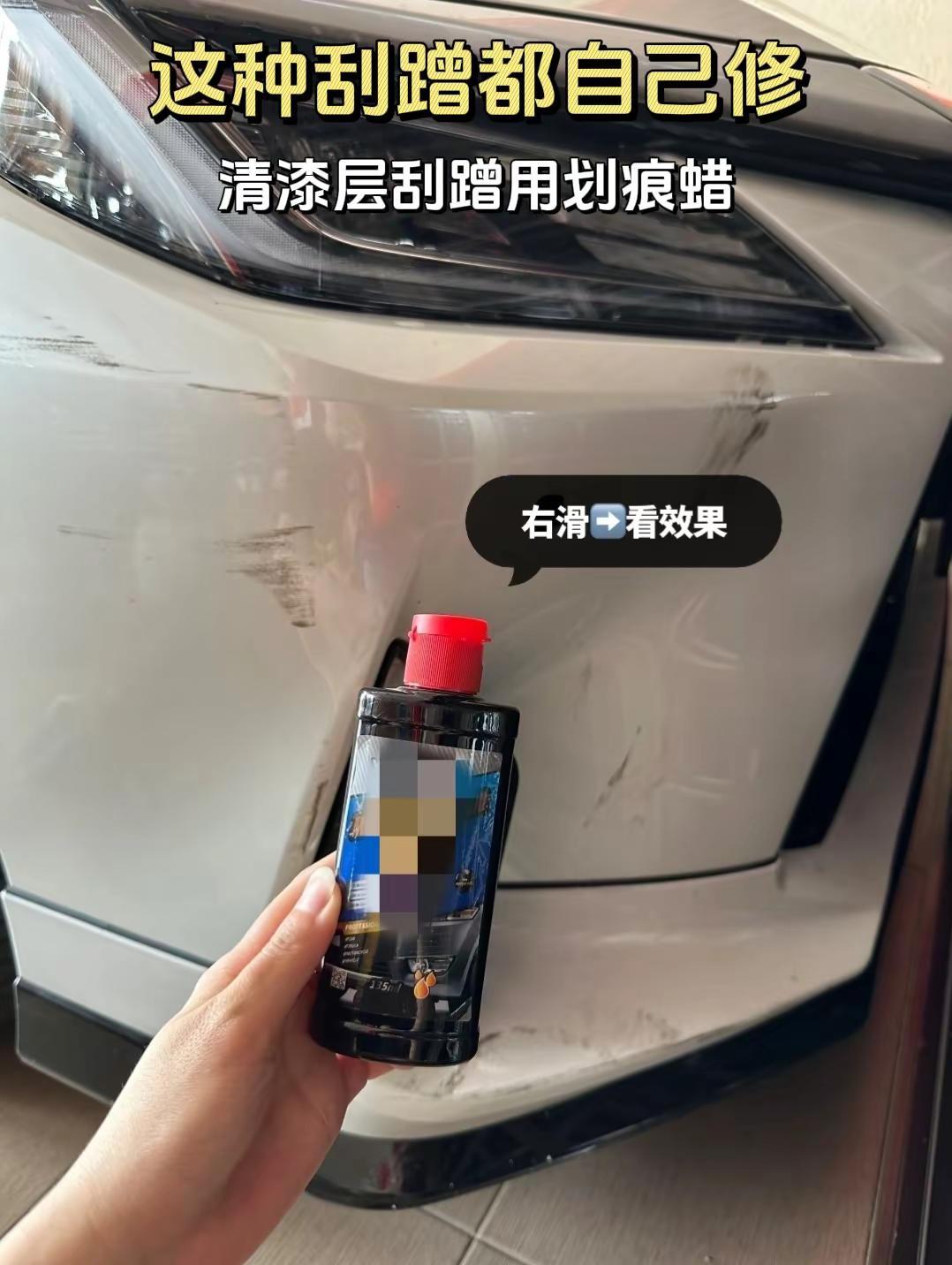 这种刮蹭都自己修。车漆刮蹭中,清漆层刮蹭算是最好修的,它有几个特点:1️⃣车漆表面无凹凸感2️⃣刮蹭部位粘上非车漆的污渍3️⃣部分污迹用洗洁精可以擦掉为什么建议用划痕蜡?因为划痕不仅能去污迹,关键它还有一层保护膜,因为,刮蹭清漆后,清漆层已经有损伤,若不做对应保护,很有可能面漆老化加快。你学会了吗?更多用车知识,可加入群聊!划痕蜡 划痕 用车知识 车知识分享计划 车漆