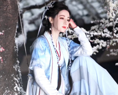 迪丽热巴蓝色吊带裙造型写真