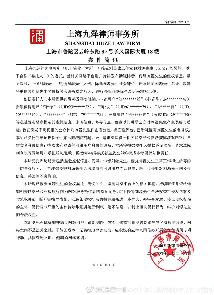 刘昊然方已起诉刘昊然方告黑刘昊然方已起诉。