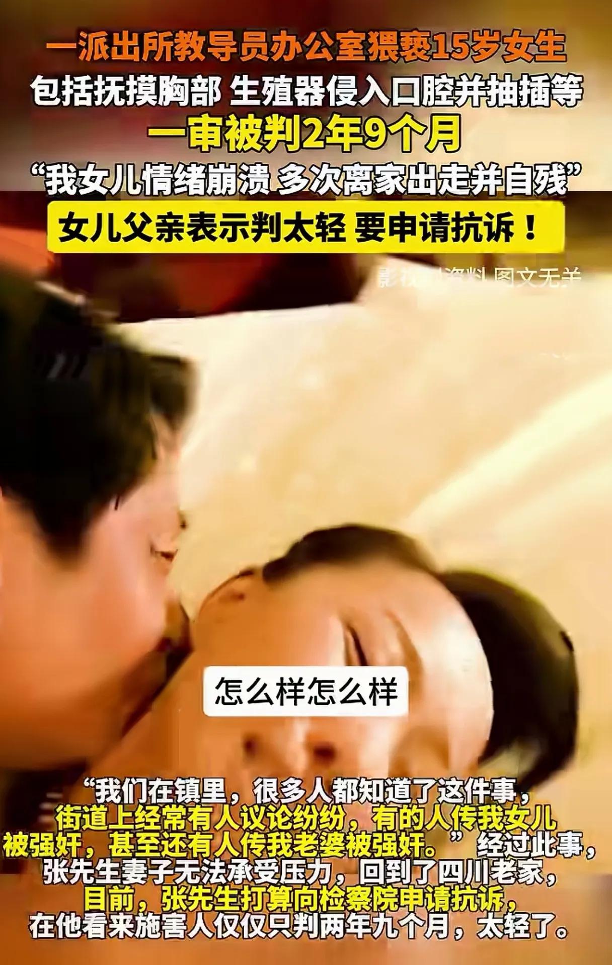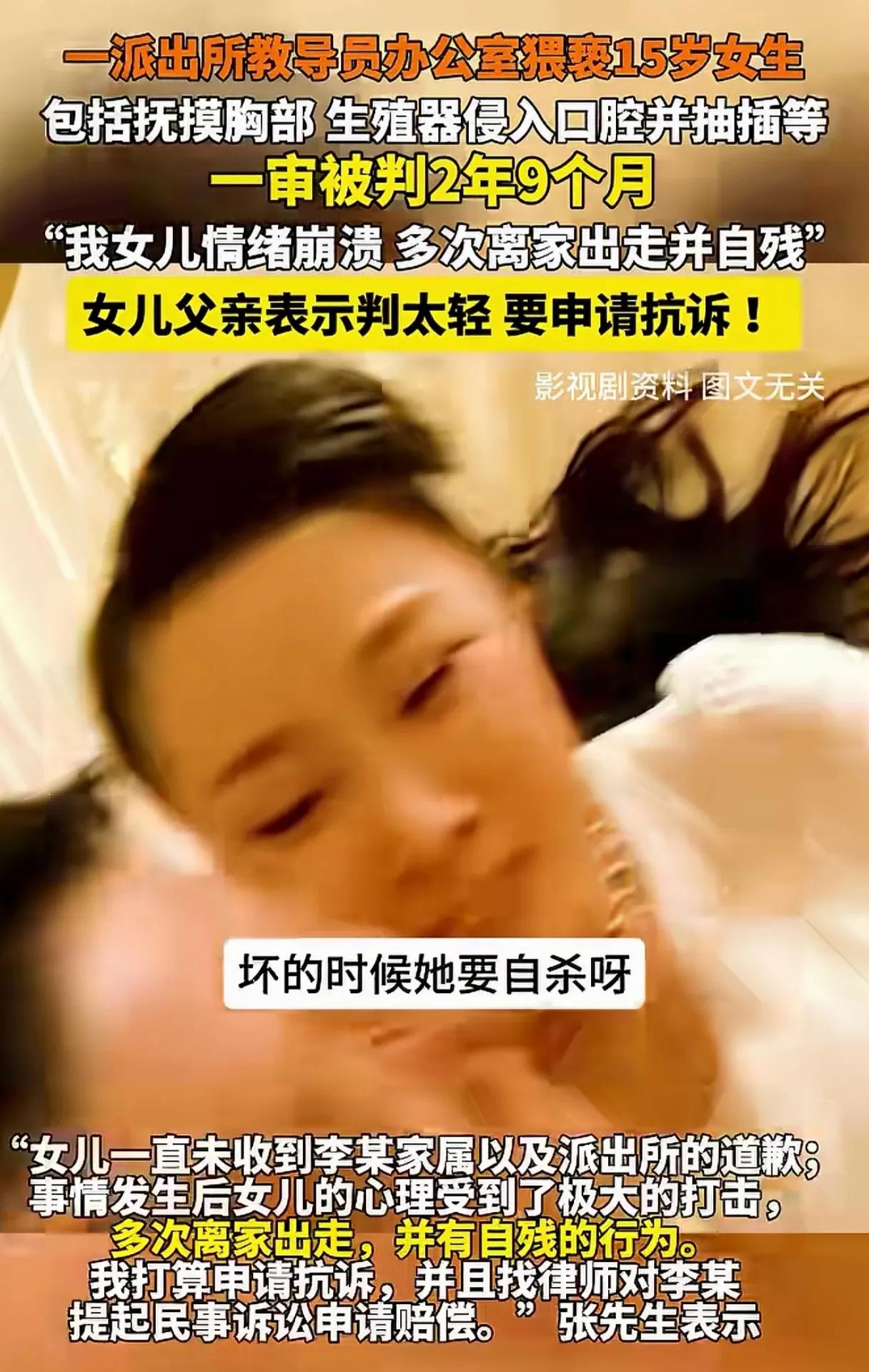 判得太轻了,至少三年起步吧!那个程度还叫WX有点说不过去了吧! 身为执法者,本应守护一方平安,却利用职务之便,将魔爪伸向未成年少女,这样的行为令人发指!李某知法犯法,利用职务职权侵害未成年人,不仅违背了职业操守,更突破了法律与道德的双重底线,性质极其恶劣,必须受到法律的严惩,然而仅判2年9个月! 对于这样的结果,女孩家属难以接受,认为量刑过轻,目前已正式向检察机关申请抗诉,同时还计划提起民事诉讼,为孩子讨要公道。