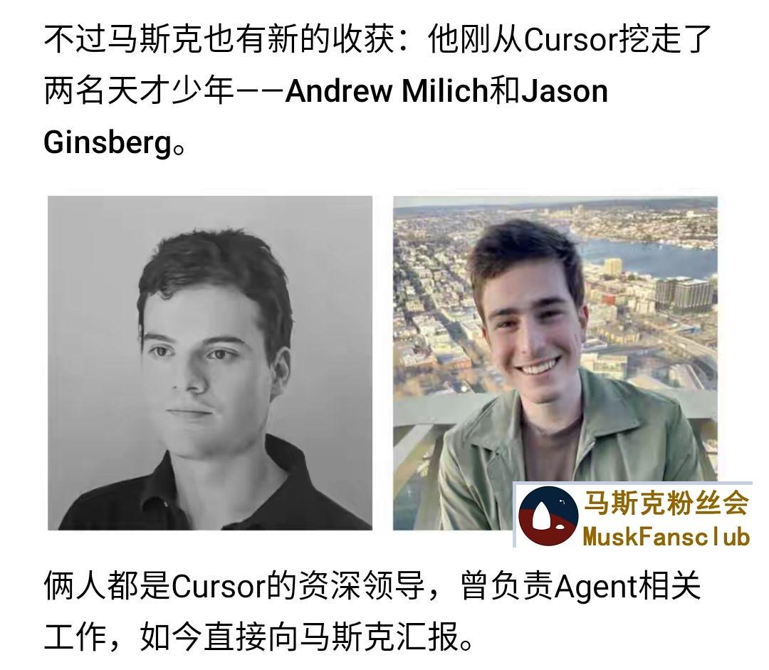 马斯克从知名AI公司cursor挖来两个天才。