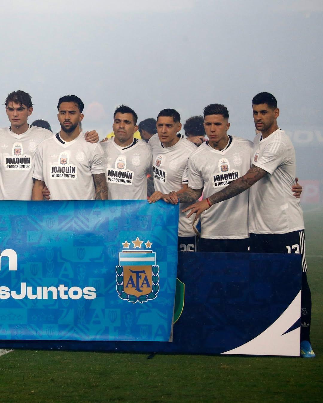 在对阵毛里塔尼亚的比赛赛前,阿根廷国家队的球员们表达了对受伤的福伊特和帕尼切利的支持。