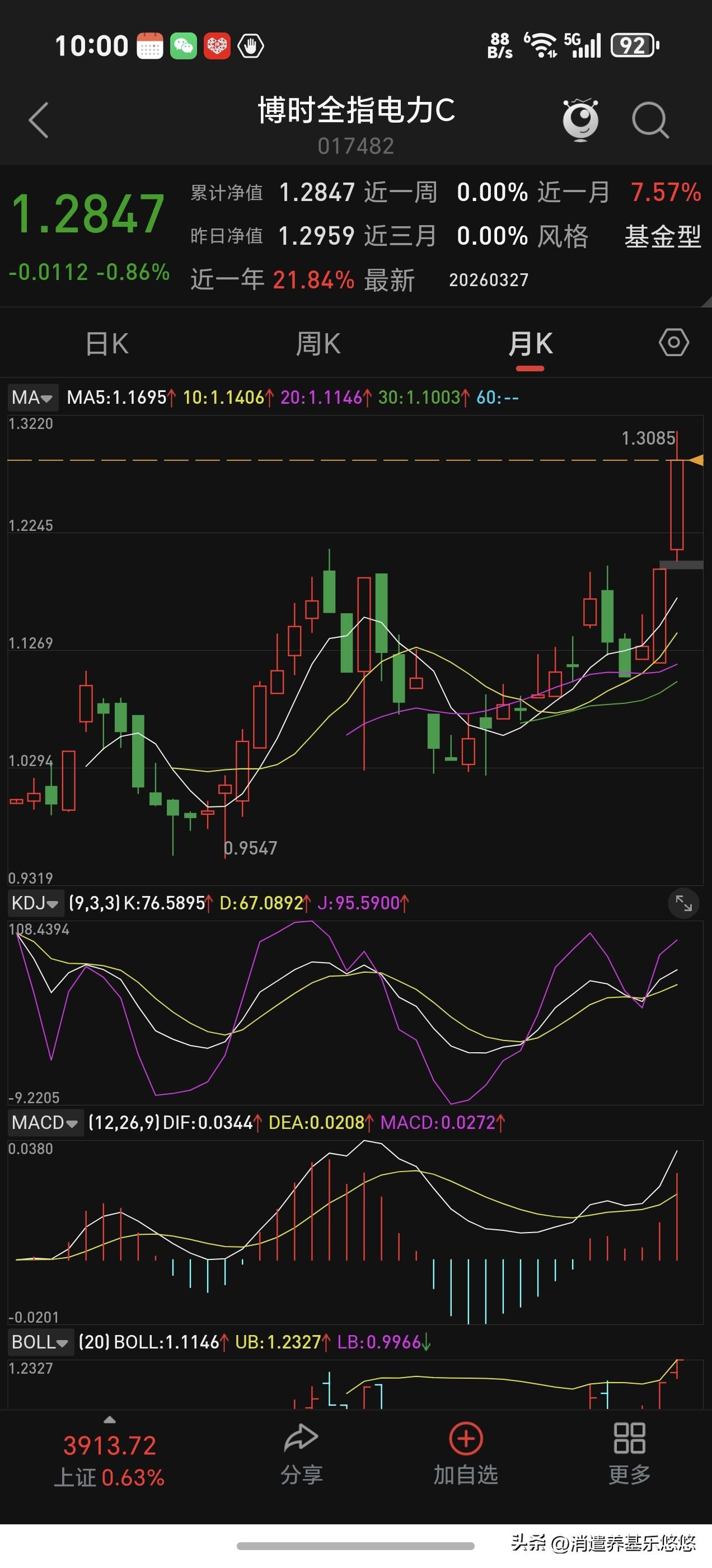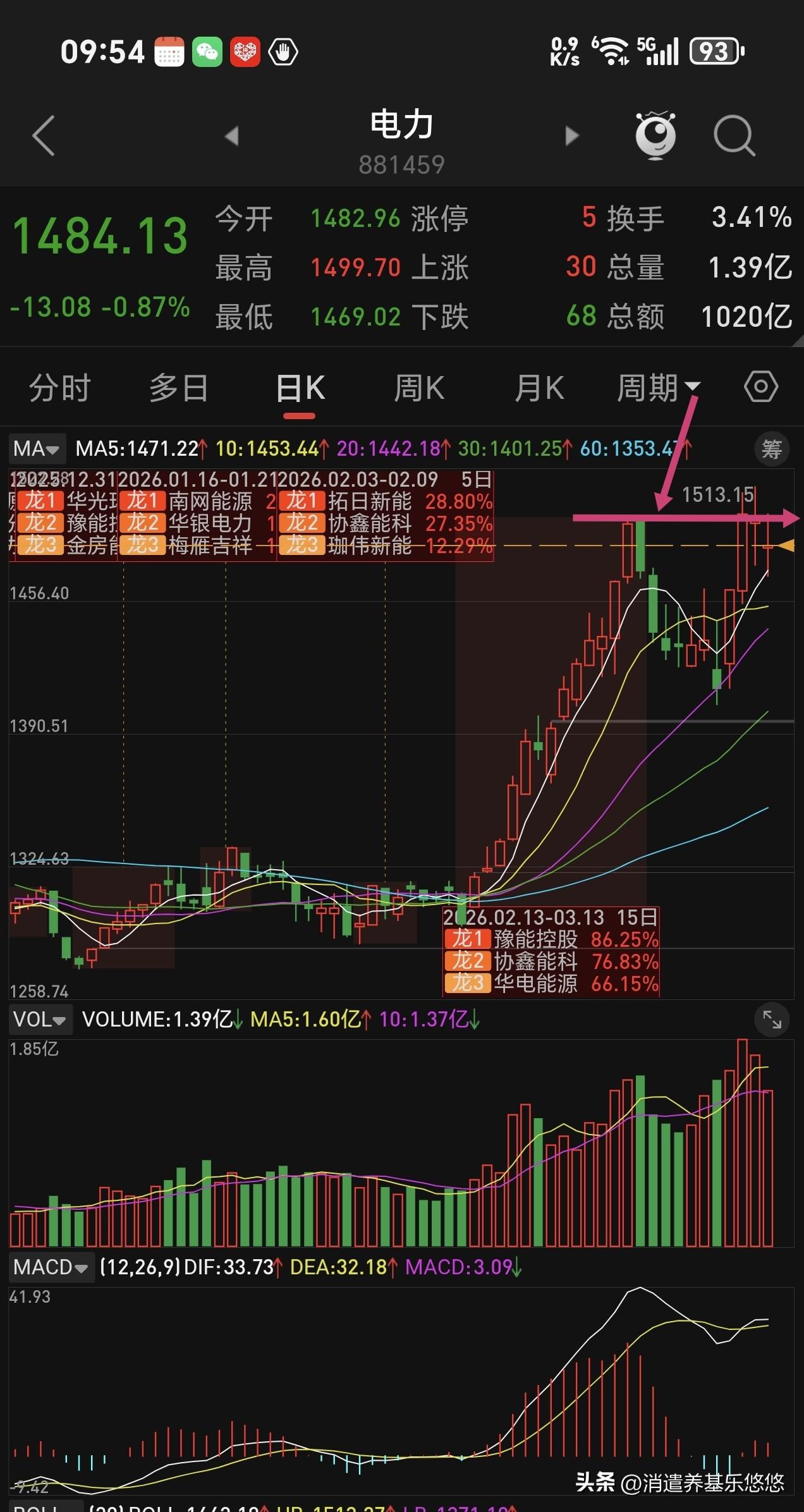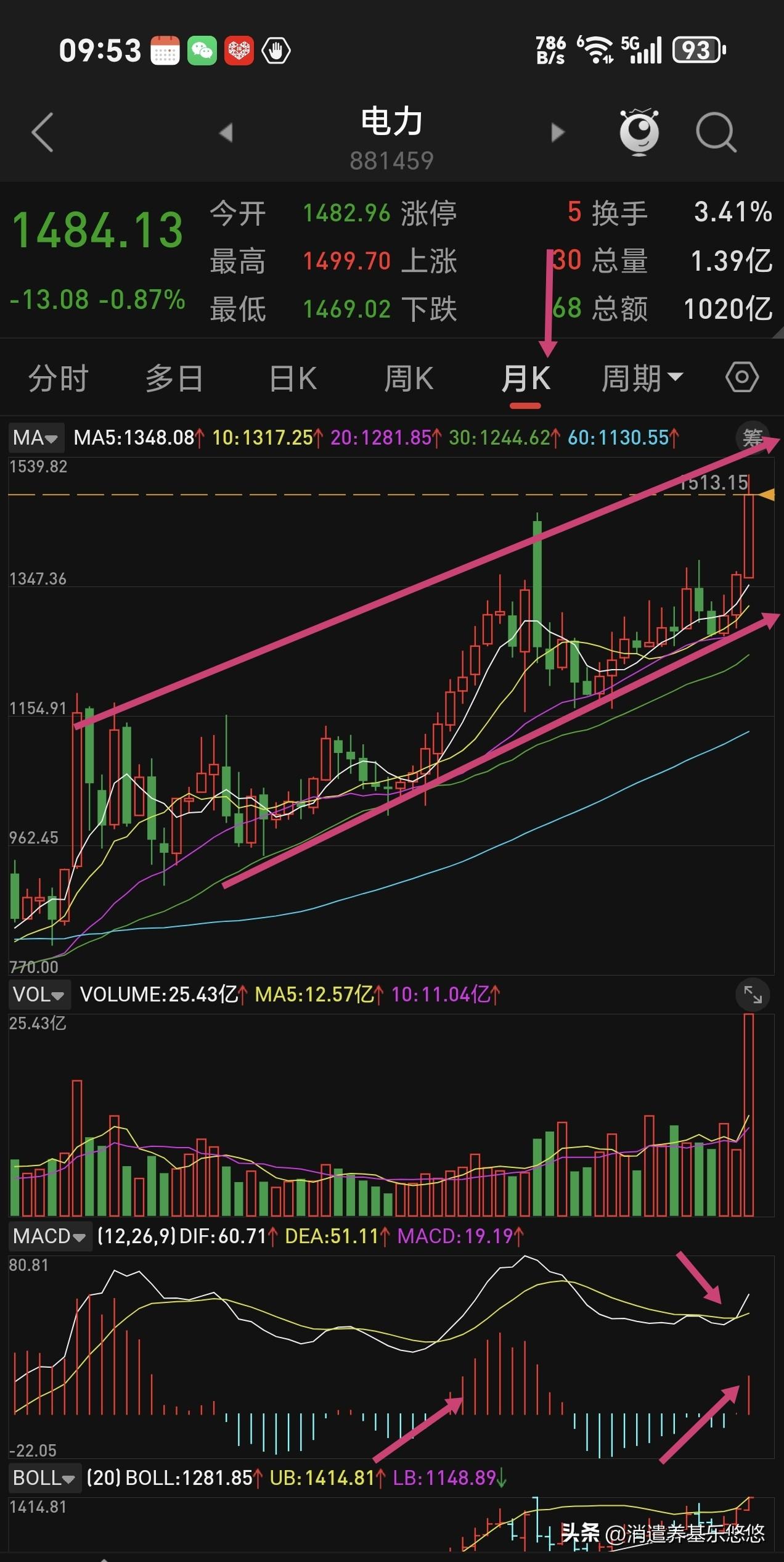 电力板块下周再不拉升我就出来,高位进去的,小绿一点点,不再熬下去了,感觉它上涨乏力,有点想退潮。周五电力指数收盘站上了5日线,还属于上涨趋势。从月线走势来看,趋势向上运行,还有上涨空间,等待时间有点长了,守一两个月不知道能涨多少,仓位不大,小赚小亏都不想拿它了。 从过往经验来看,每年夏季来临前电力都有上涨,今年启动早点,属于慢牛行情,有点磨人。守坚持几个月肯定有盈利,不如弹性大的板块效果好。不是不看好,而且嫌它涨的慢,弹性小。喜欢它的可以继续持有待涨。