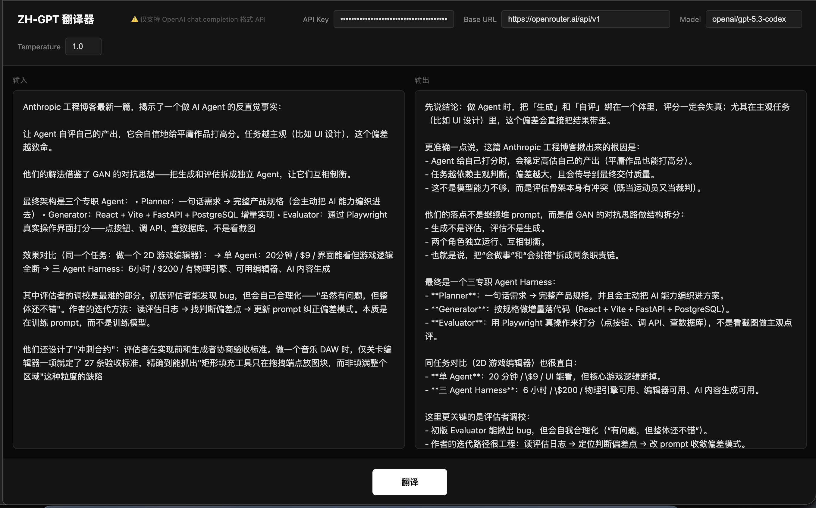 行为艺术 将 zh-cn 翻译为 zh-gpt,也就是把普通人的文字翻译为有AI味道的文字,如图源码就一个网页:github.com/qqqqqf-q/gpt-translatorHow I AI