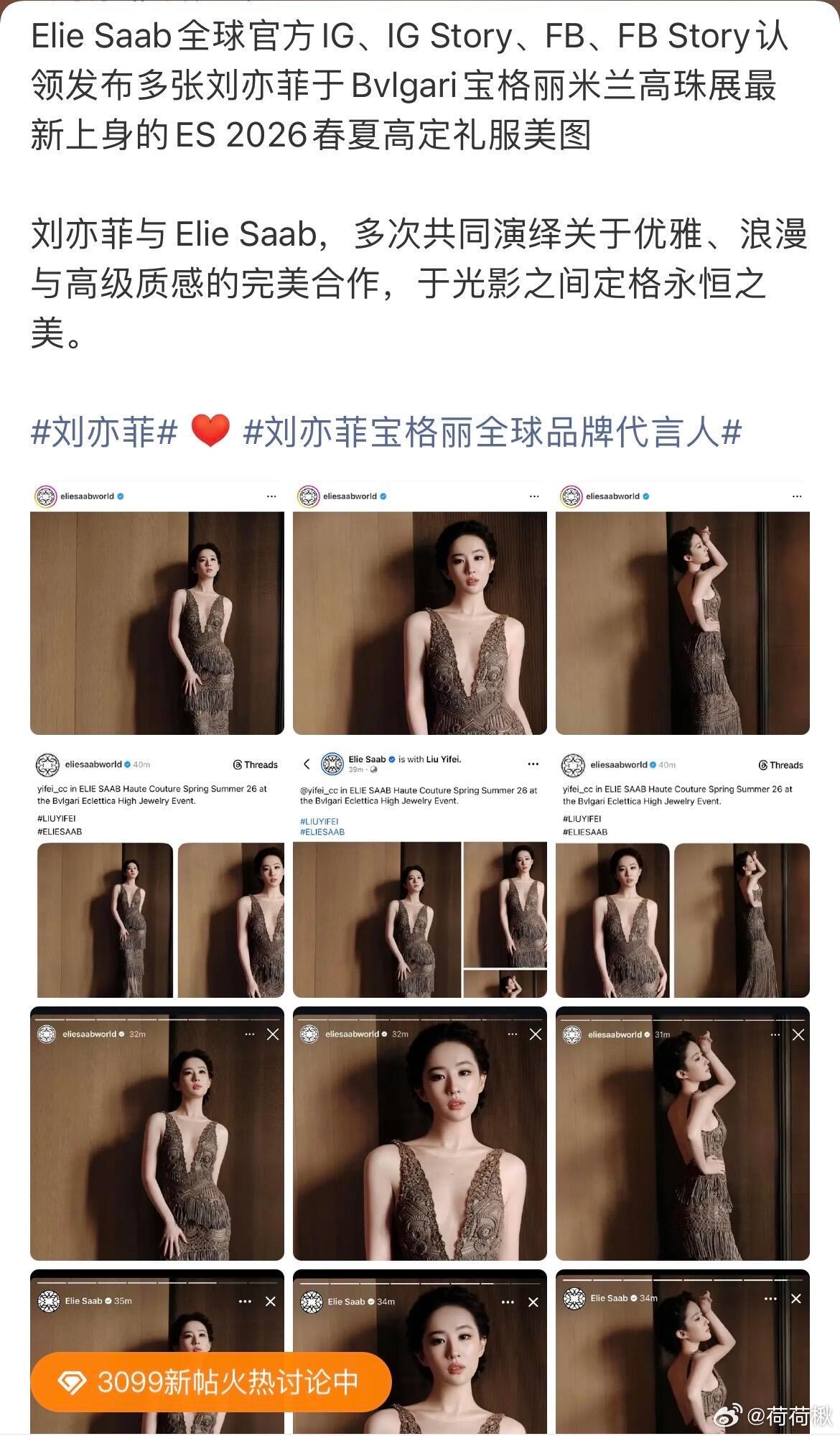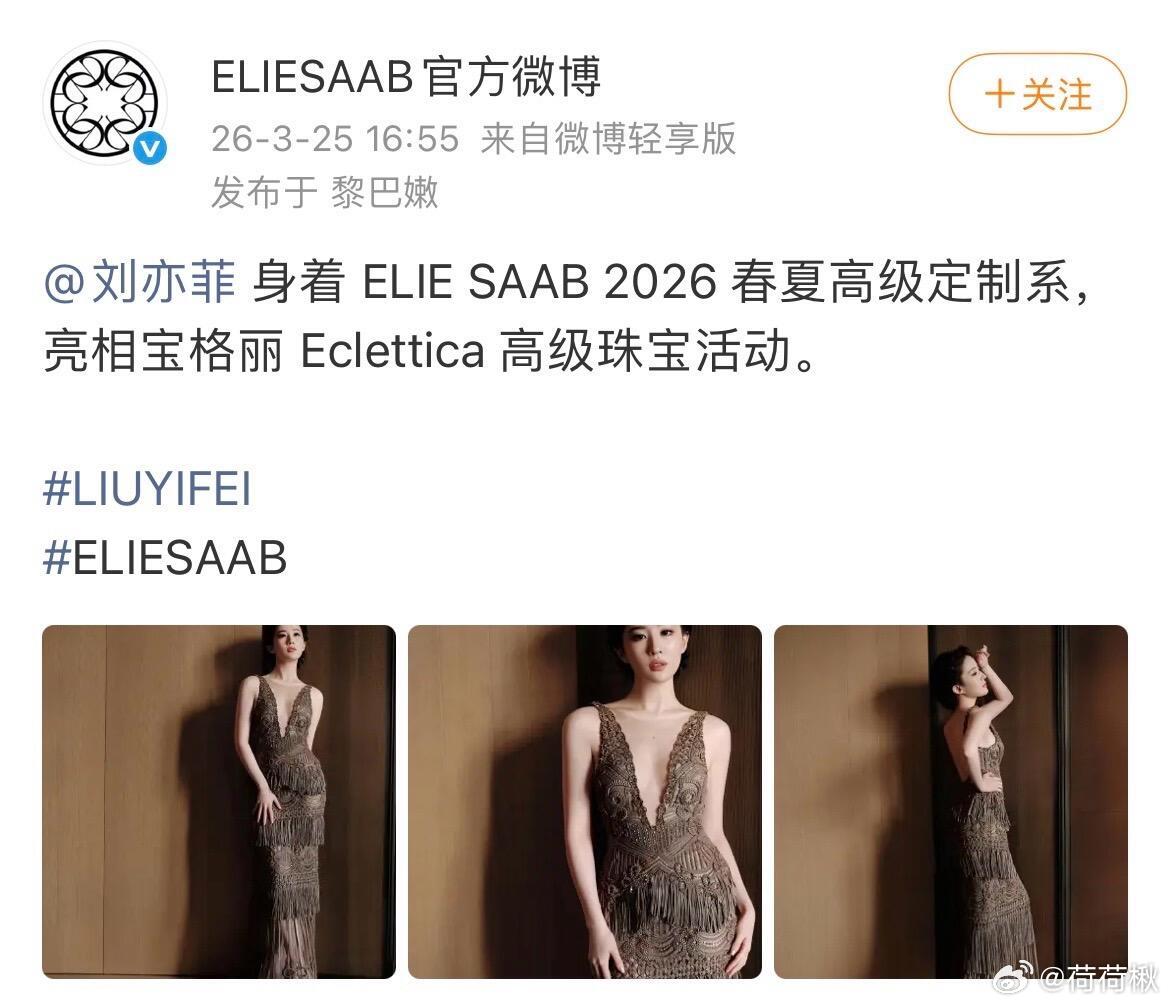 刘亦菲深v流苏太绝了Es春夏高定,依旧是内娱首穿,大高个就是好啊!宝格丽女王刘亦