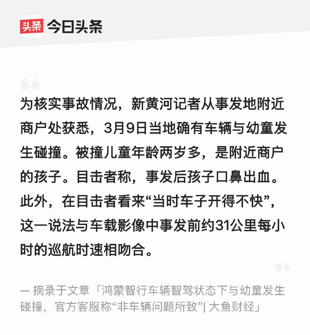 鸿蒙智行车辆智驾状态下冲撞幼童庆幸的是幼童已经无大碍,蹲个后续!