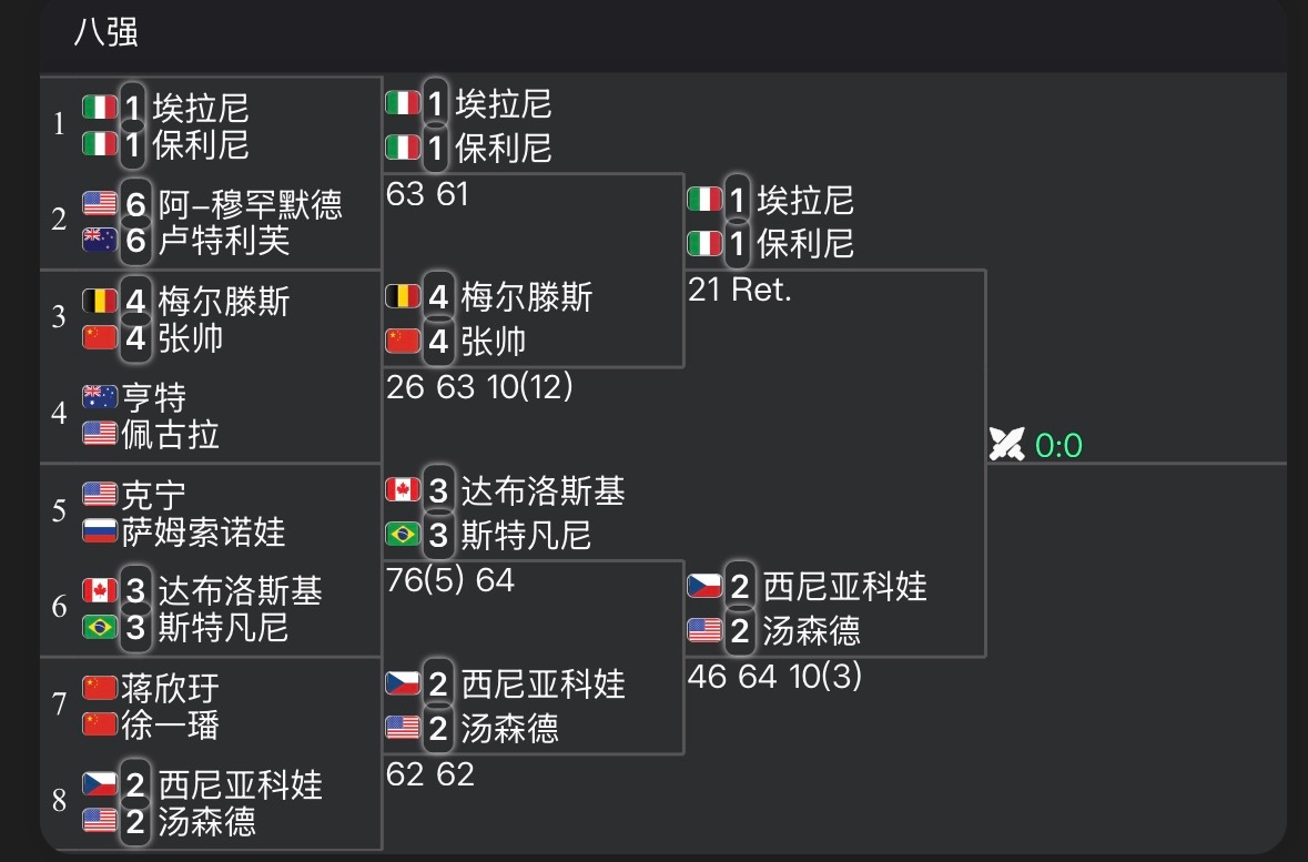 迈阿密女双,埃拉尼/保利尼在开场2-1领先后,梅尔滕斯因身体不适退赛,头号种子随之晋级决赛,接下来将与2号种子斯尼亚科娃/汤森德争夺冠军。网球wta体育大赏