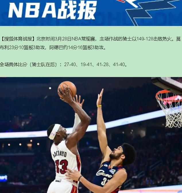 找到了!这比赛真实存在,但比分搞反了——是骑士149-128大胜热火,不是你想的那样! 等等,这剧情不对啊!3月28日这场,斯特鲁斯面对旧主热火扔进了8个三分砍29分,骑士半场81-46直接打花,这哪是热火崩盘,分明是斯特鲁斯这"热火旧将"手刃老东家! 若您细品,这场球有看头。 阿伦缺阵10场复出,上来就连拿5分,梅里尔三分跟上,骑士8-0开局就把热火打懵了。热火这边阿德巴约14分16篮板,看着数据挺唬人,实际上上半场莫布利+托马斯·布莱恩特被他防得合计才拿12分,这防守是真硬! 下半场热火倒是醒了,希罗、维金斯连着追分,一度追到差19分。可斯特鲁斯跟开了挂似的,全场8个三分,其中6个是上半场扔的——这叫"面对旧主绝不手软"!哈登17分14助攻盘活全队,35岁老将这控场稳如老狗。 说到底,这场球治愈在哪儿?阿伦复出即插即用,斯特鲁斯大伤归来找回手感,这都是球队深度的底气。热火输21分不冤,骑士这进攻火力149分,谁来都得跪。但球迷得明白:常规赛虐菜是本事,季后赛真刀真枪,还得看核心成色!