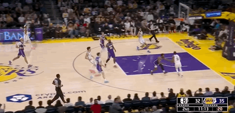 布朗尼可以啊,第二节就登场了,造成对手失误,浪费两分机会!篮网vs湖人