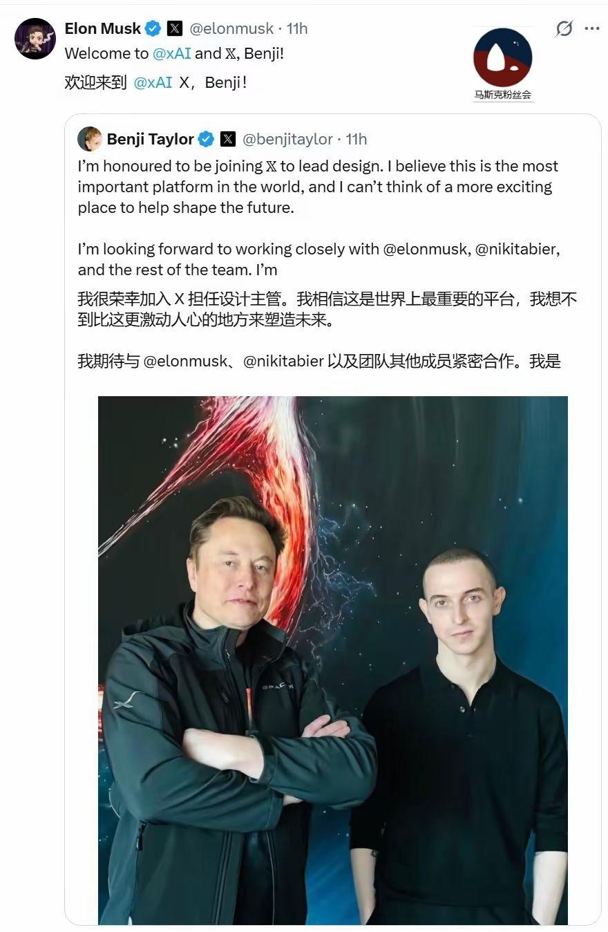 马斯克又招揽一员大将。 Benji Taylor 曾创立自托管加密钱包 Family,后被 Aave 收购并担任 CPO,2024 年加入 Base 担任设计负责人。