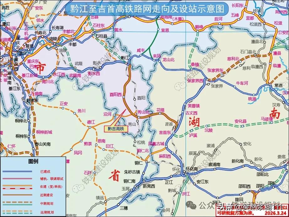 重磅!计划于 2026 年底力争开工建设的 4 个高铁项目,目前已进入初步设计定测阶段,环评报告尚未公示。结合现场勘测情况及相关规划资料,各站点的具体选址已基本明确: 1、永清广高铁新建6个站分别为双牌东站、宁远站、蓝山站、连州站、阳山站、清远西站。 2、黔吉高铁新建3个站分别为酉阳西站、秀山北站、花垣站。 3、南信合高铁新建4个站分别为唐河北站、泌阳站、桐柏北站、潢川南站。 4、阜黄高铁新建5个站分别为淮滨南站、新县北站、红安站、麻城西站、武汉新洲站。 上述高铁站点均为新建车站,车站具体选址见下面第一张图片汇总,看看有没有设在你家门口的高铁站,其余未列出车站有些是既有站改扩建,有些是越行站,有些是接轨站,以上高铁站位置仅供参考,部分车站位置最终可能有出入,以最终批复方案为准!